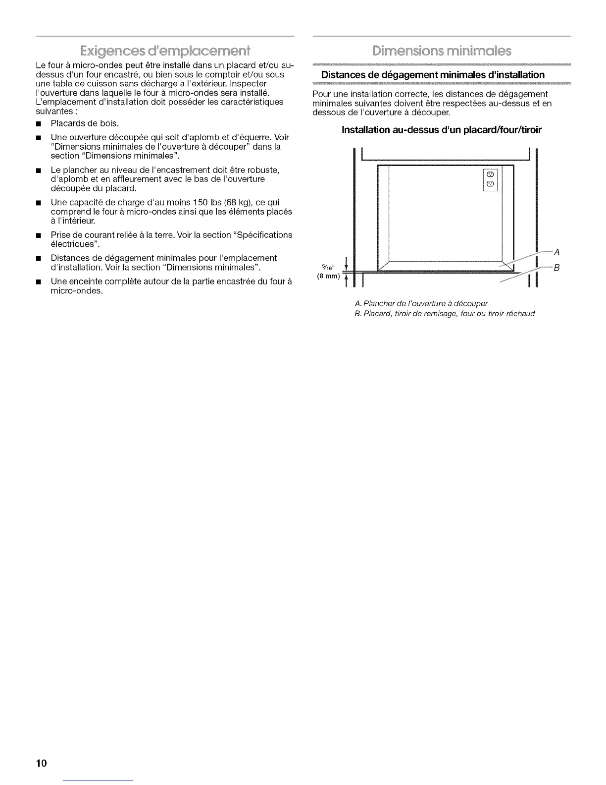 d'installation.Voirlasection"Dimensionsminimales".