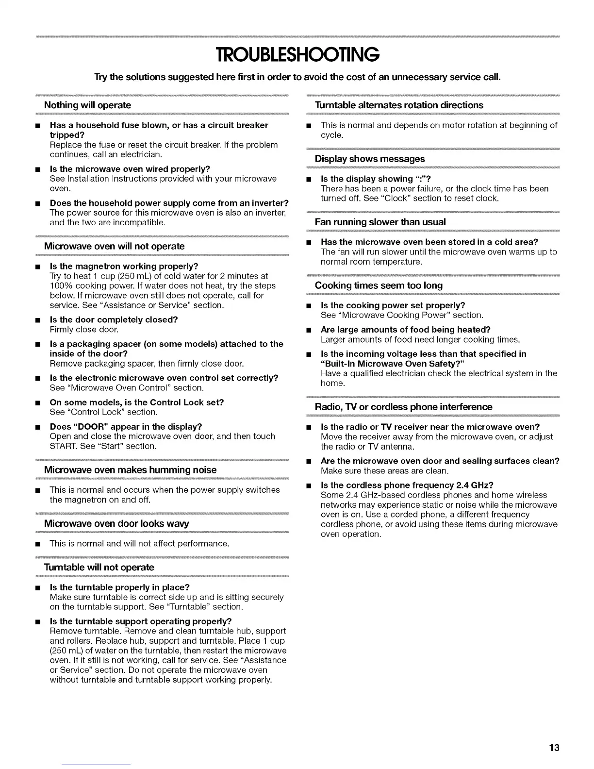 below. If microwave oven still does not operate, call for