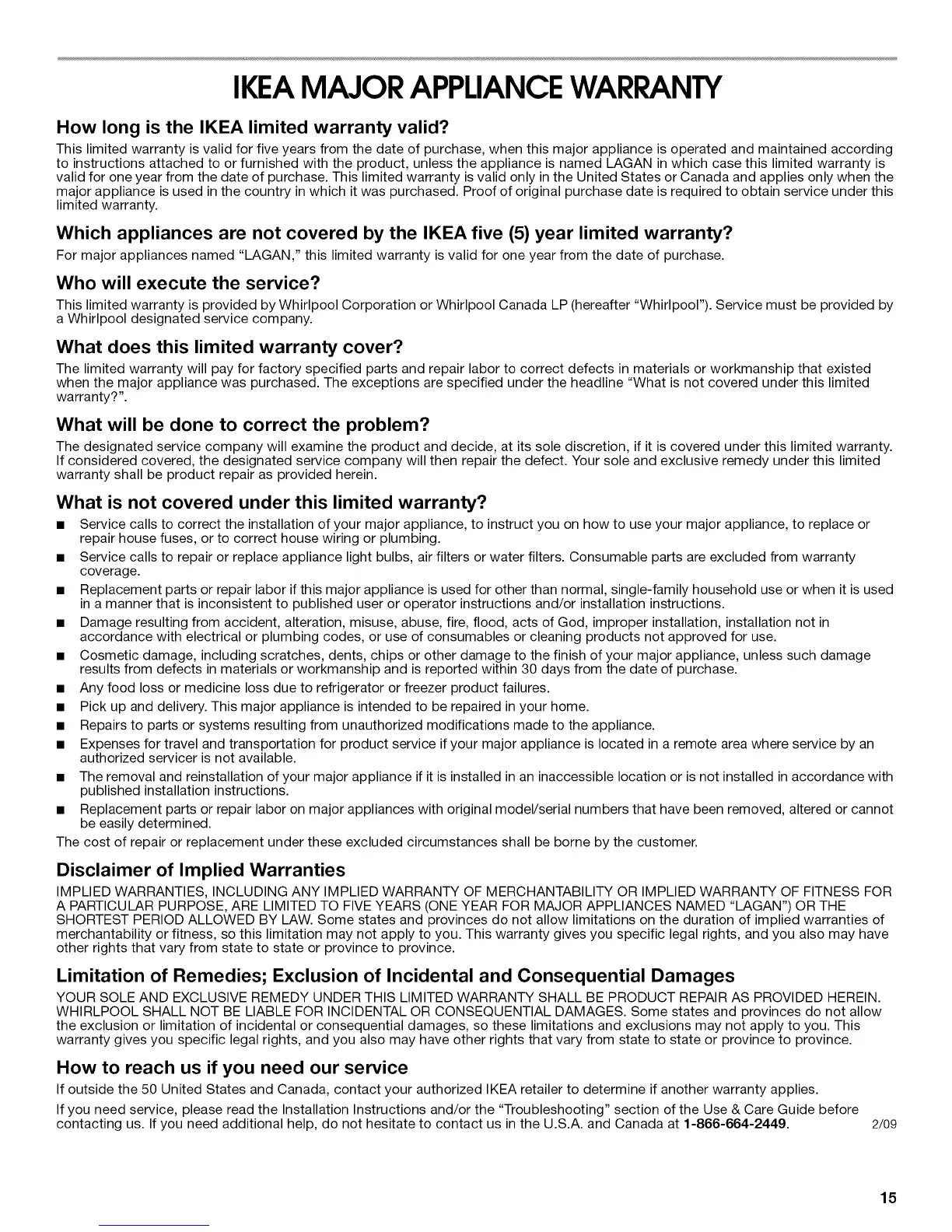 IKEAMAJOR APPLIANCEWARRANTY