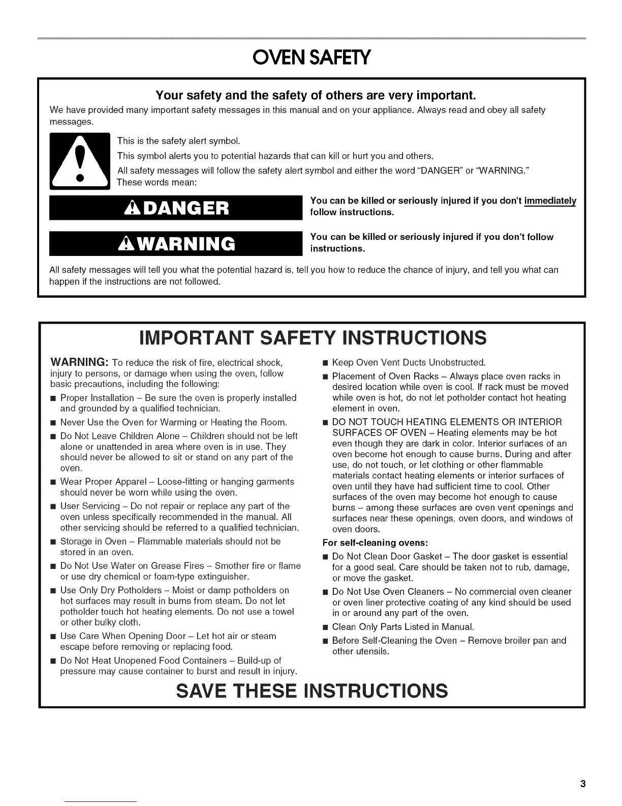 [] Keep Oven Vent Ducts Unobstructed.