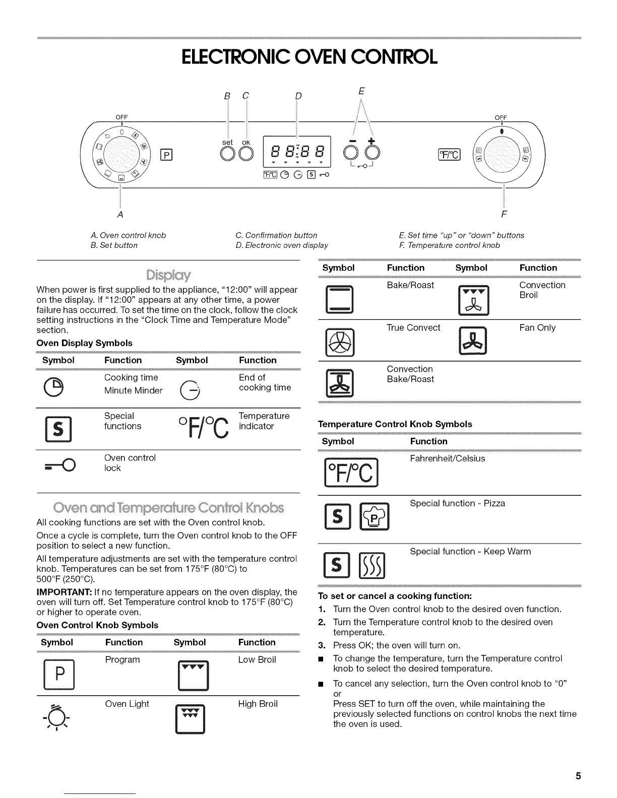 Oven Display Symbols