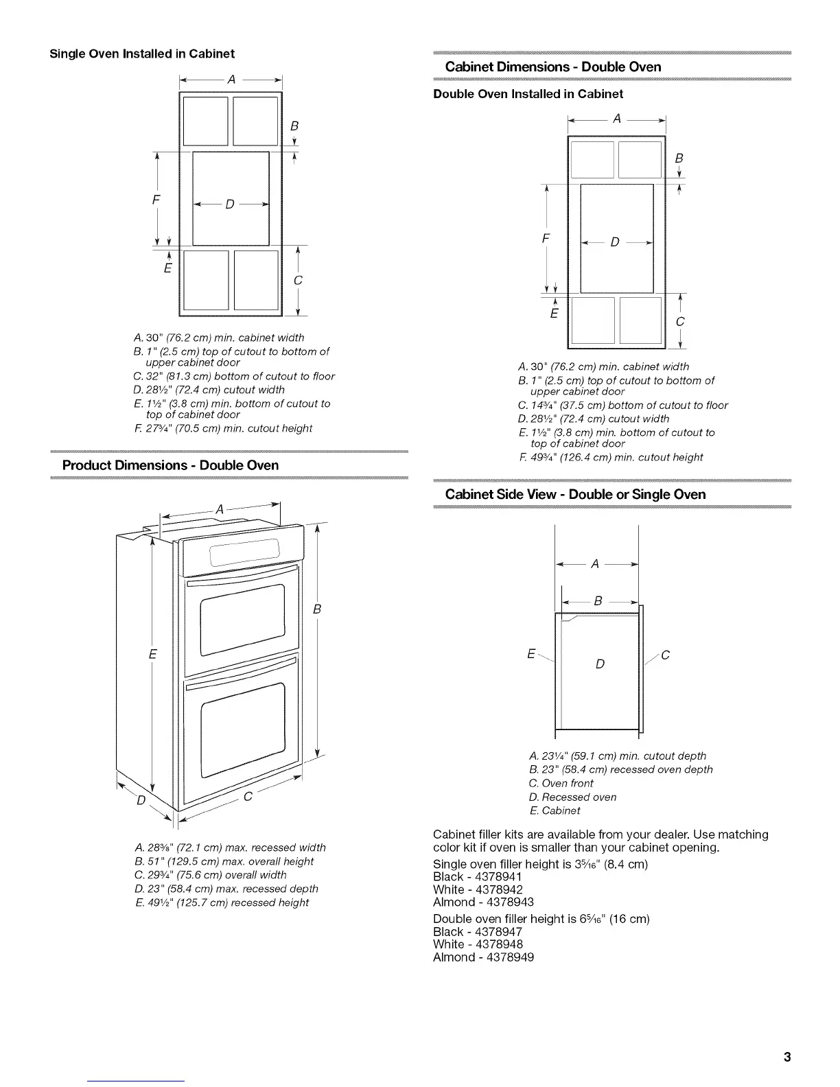 Single oven filler height is 35/16'' (8.4 cm)