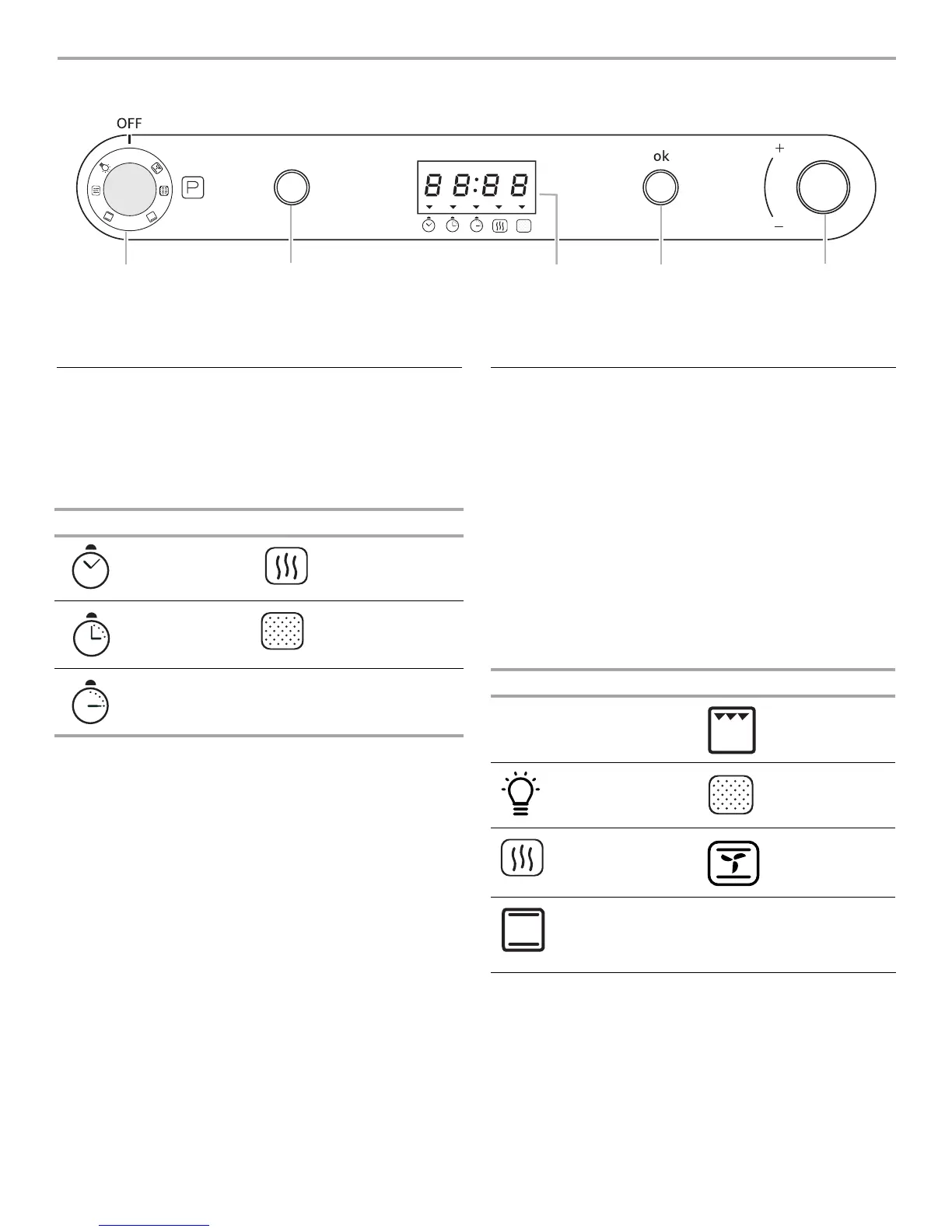 Le bouton OK met en marche toute fonction du four. Le bouton