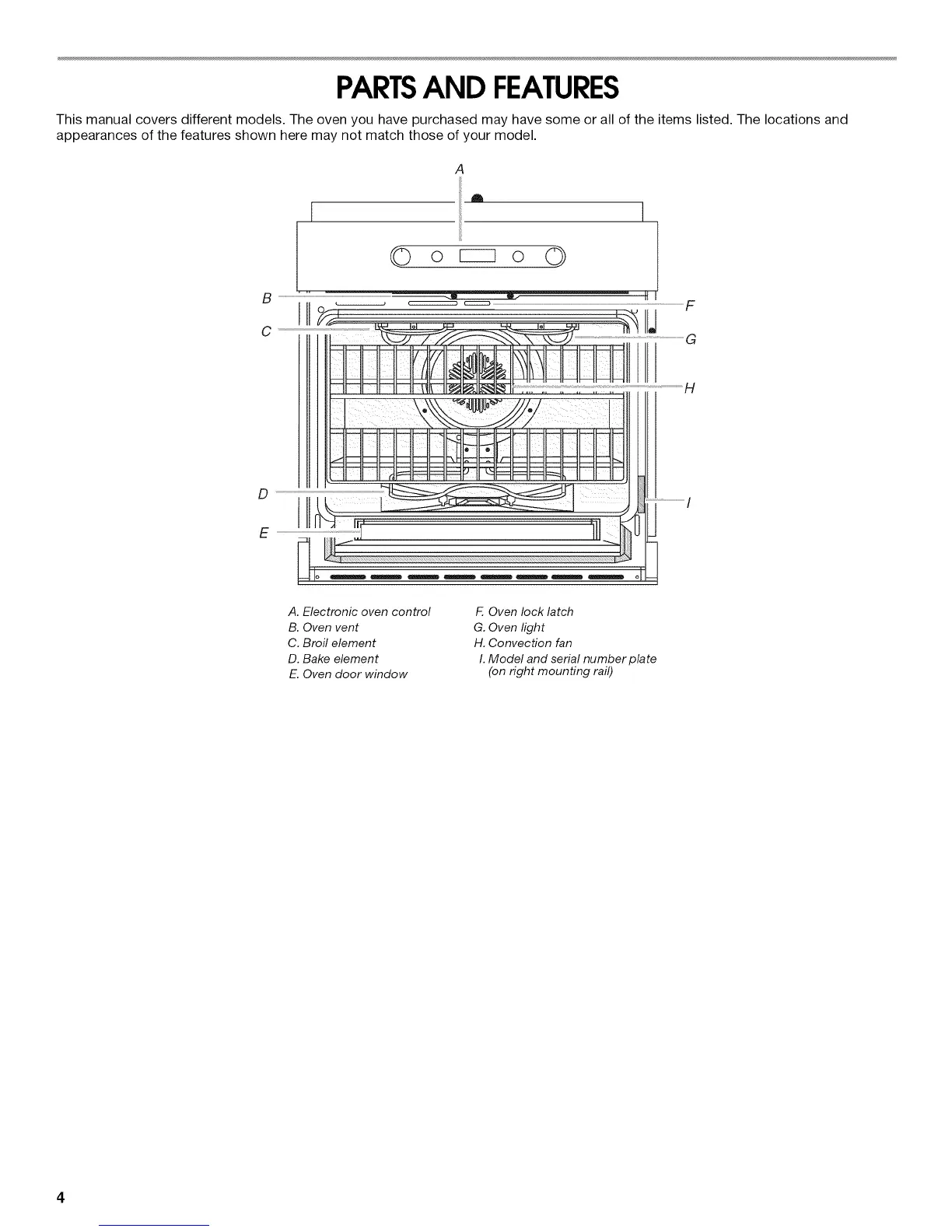 This manual covers different models. The oven you have purchased may have some or all of the items listed. The locations and