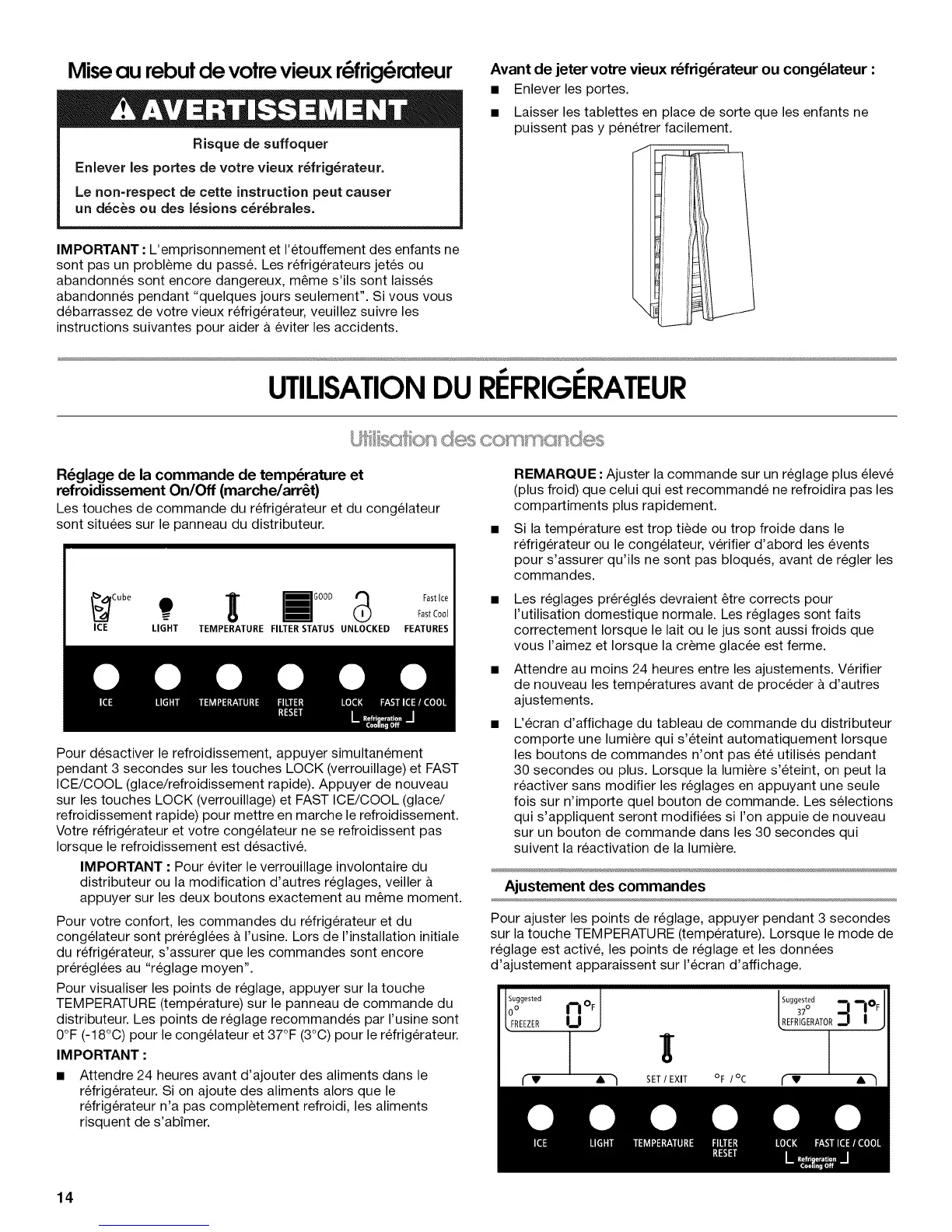 Pour votre confort, les commandes du refrigerateur et du