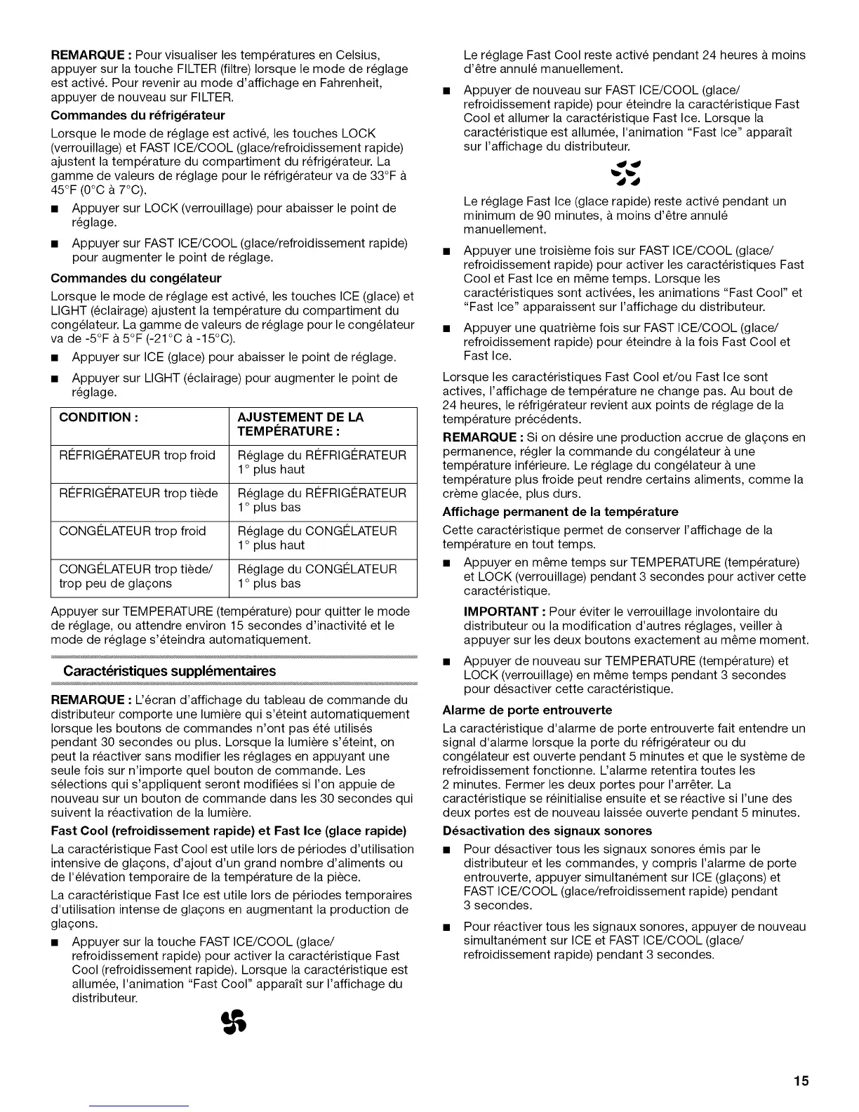 Lorsque les caracteristiques Fast Cool et/ou Fast Ice sont