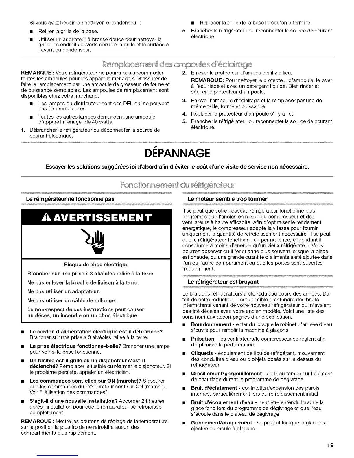 1. Debrancher le refrig6rateur ou deconnecter la source de
