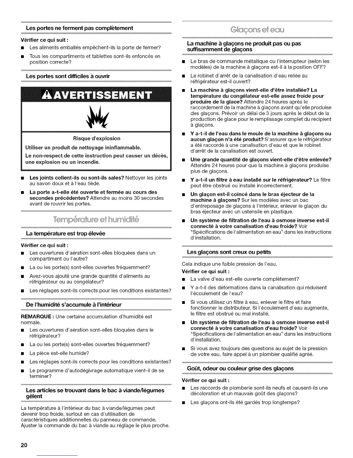 aucun gla£on n'a _t_ produit? S'assurer que le refrigerateur
