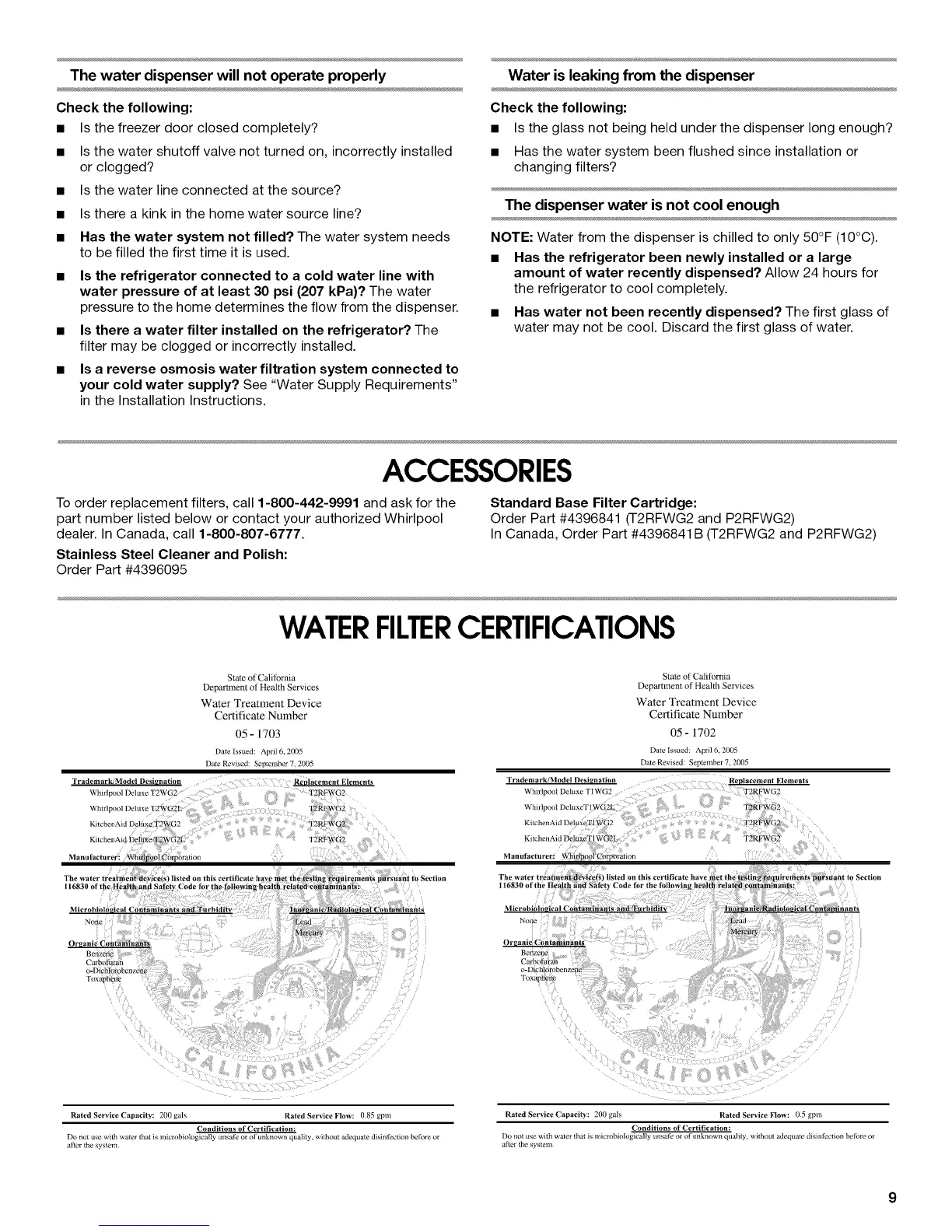 NOTE: Water from the dispenser is chilled to only 50°F (10°C).