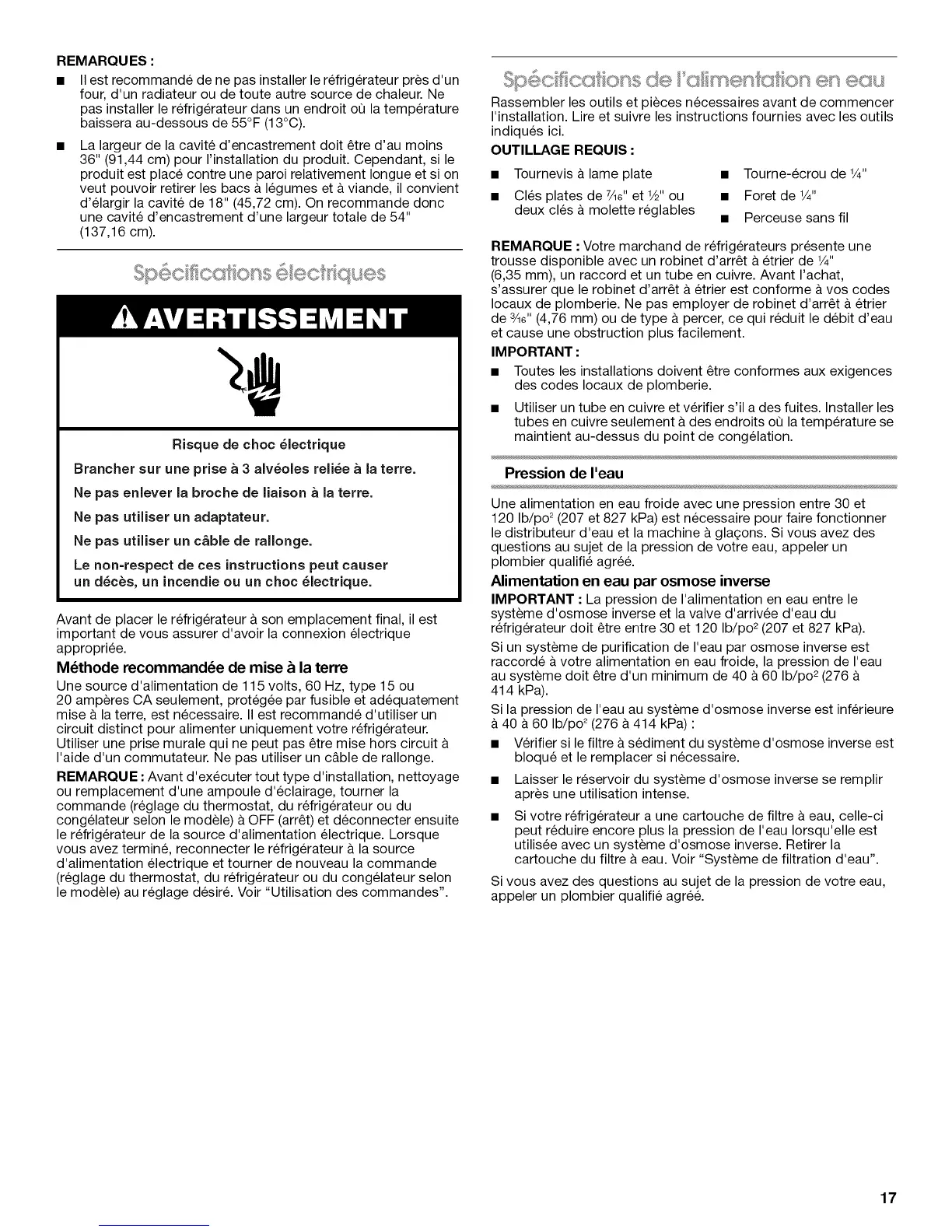 refrigerateur dolt etre entre 30 et 120 Ib/po 2(207 et 827 kPa).