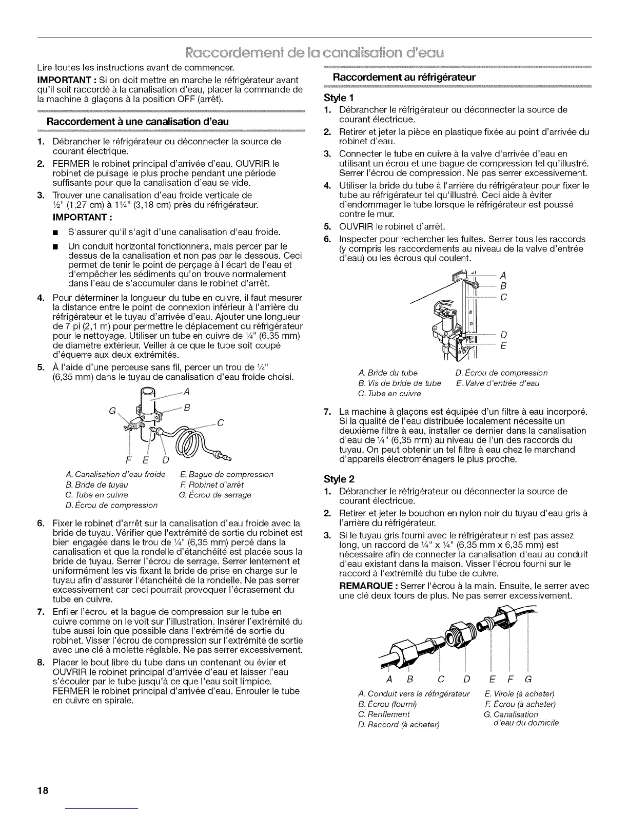 d'eau de W' (6,35 mm) au niveau de I'un des raccords du