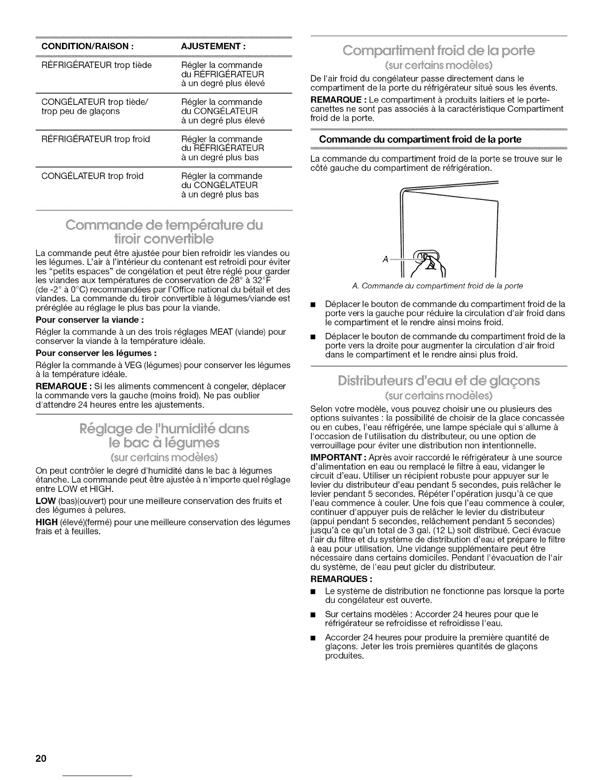 A. Commande du compartiment froid de la porte