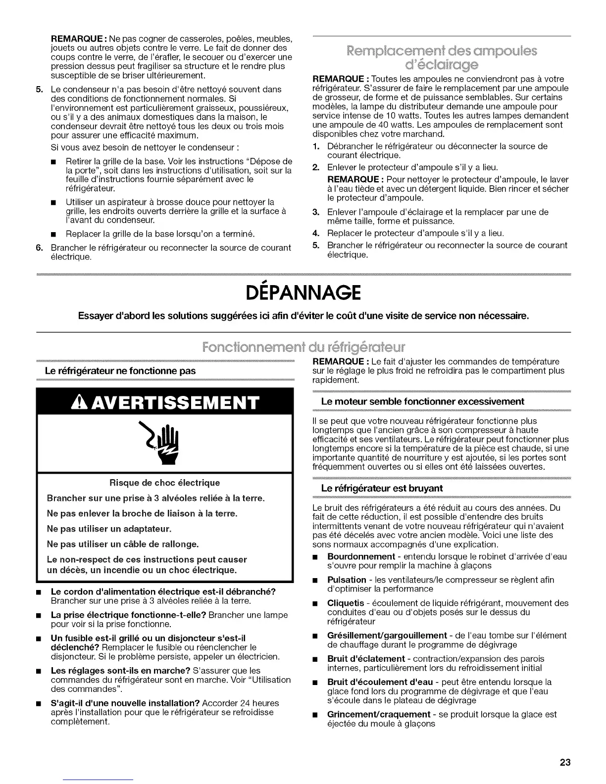 refrigerateur. S'assurer de faire le remplacement par une ampoule