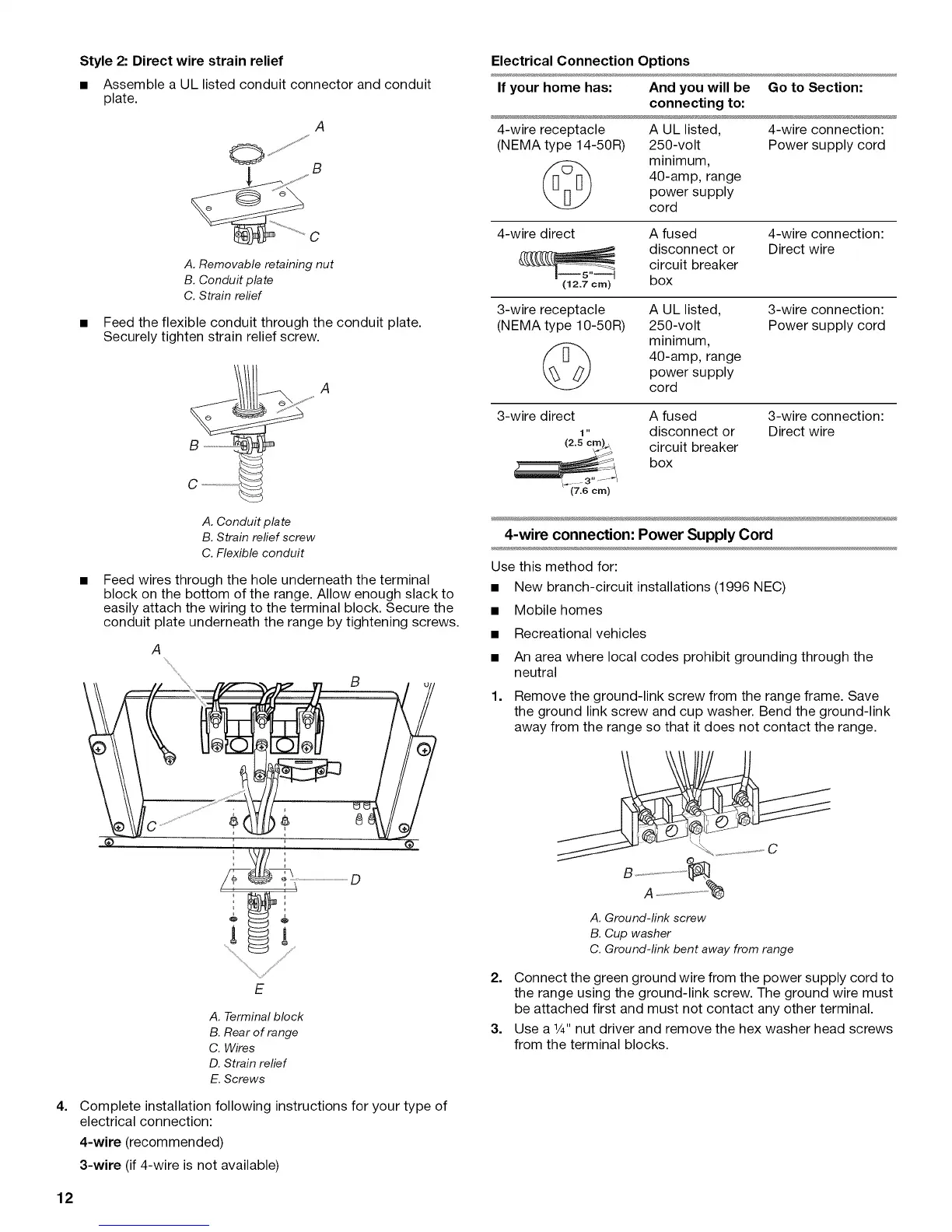 the range using the ground-link screw. The ground wire must