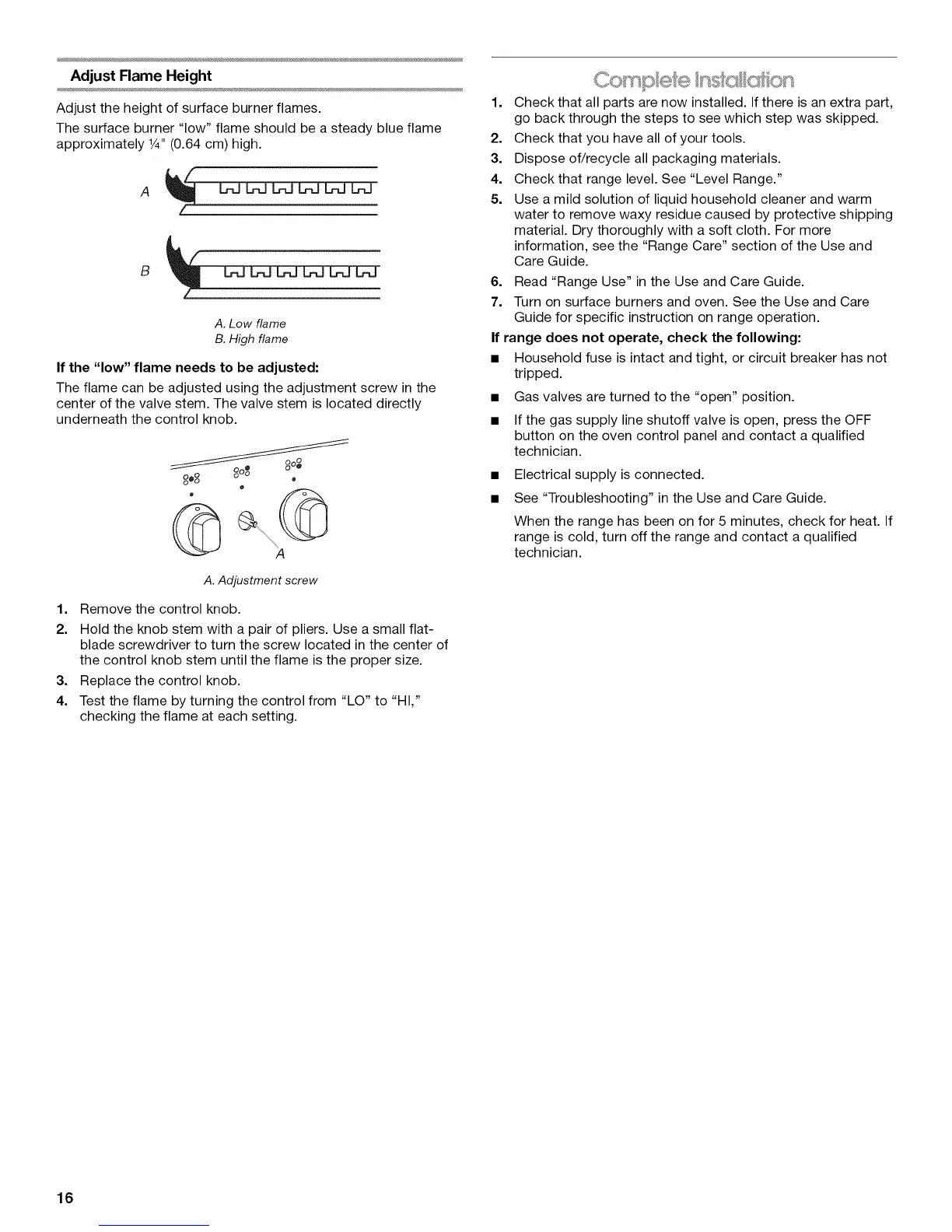 If the "low" flame needs to be adjusted: