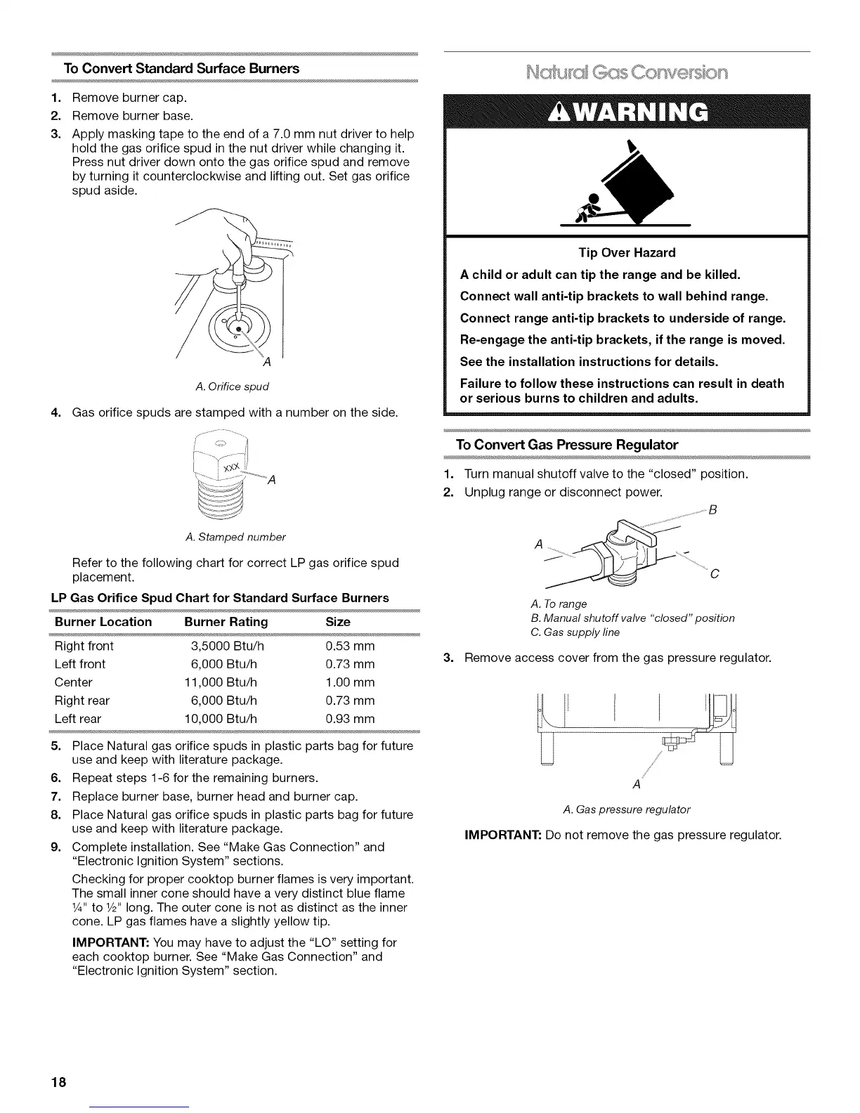 LP Gas Orifice Spud Chart for Standard Surface Burners