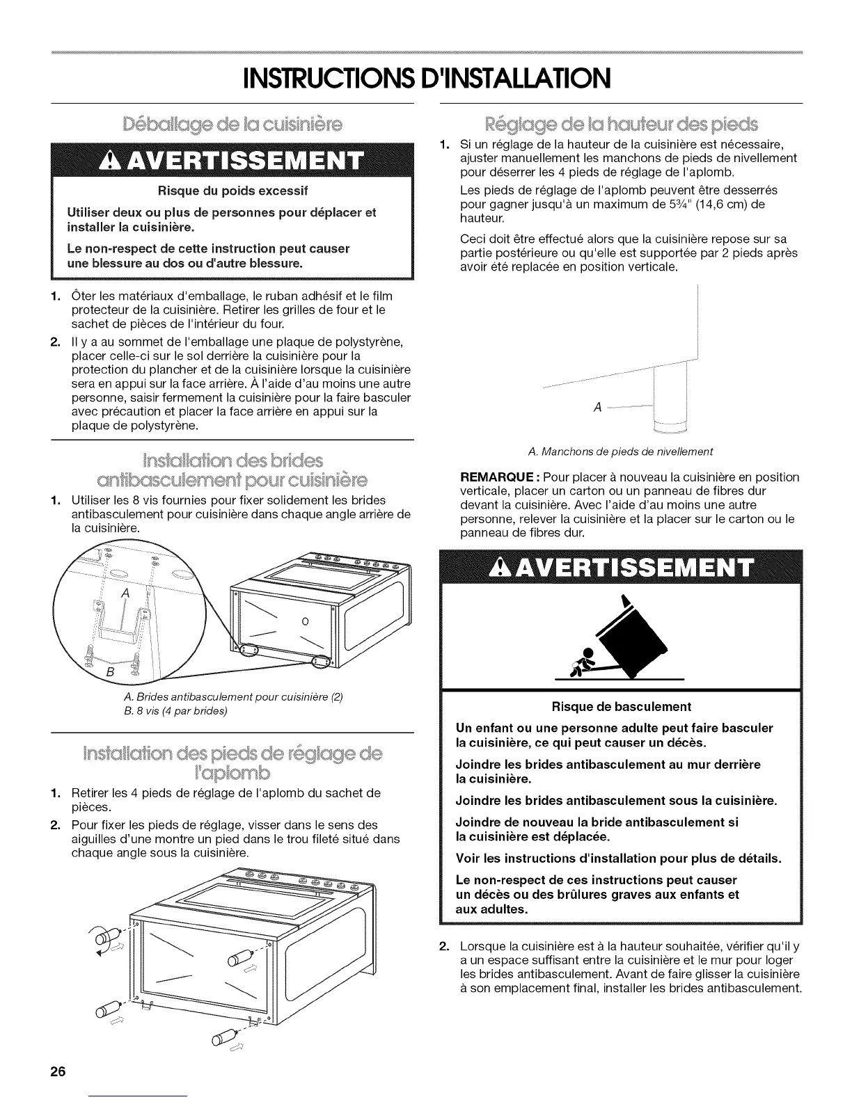 REMARQUE : Pour placer & nouveau la cuisiniere en position