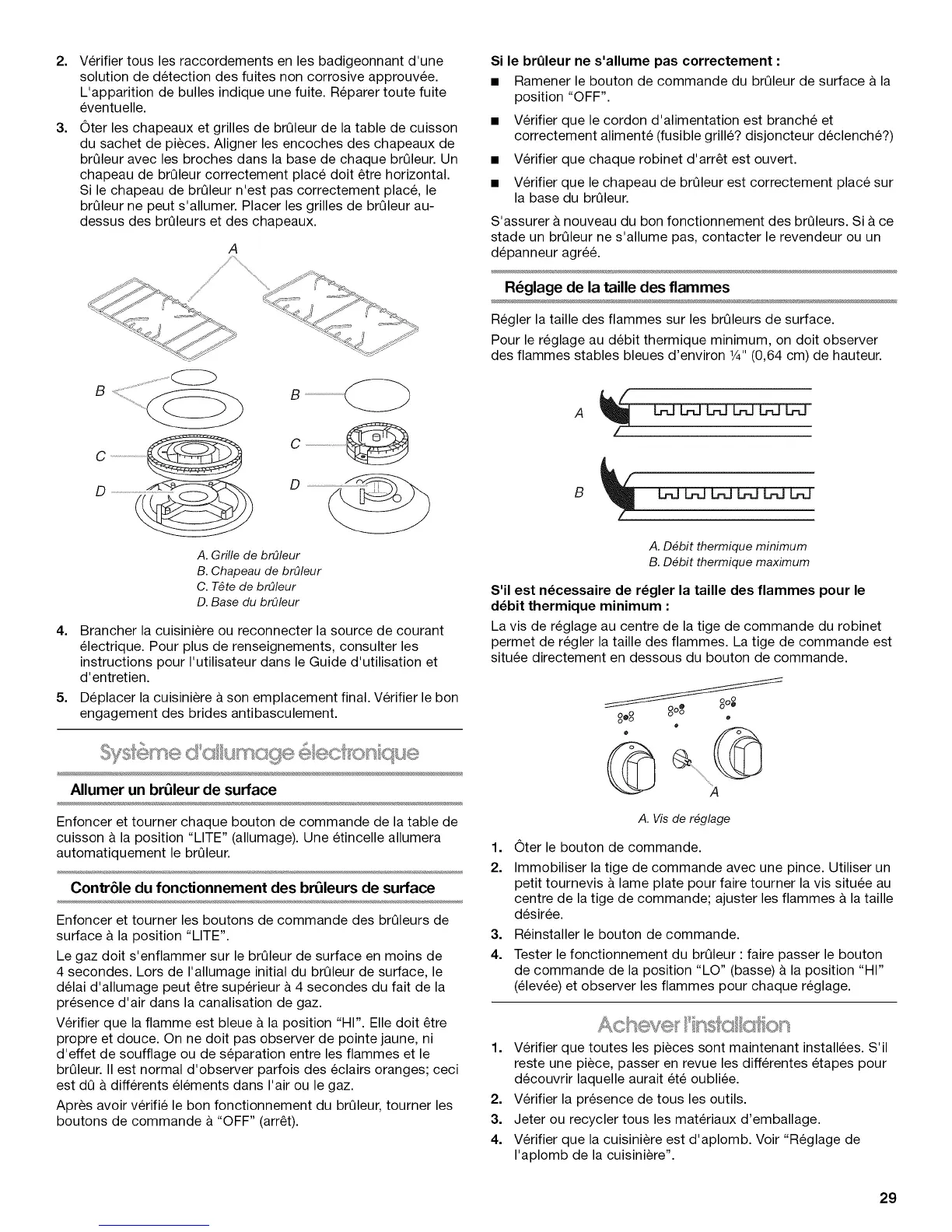 4. Verifier que la cuisiniere est d'aplomb. Voir "Reglage de