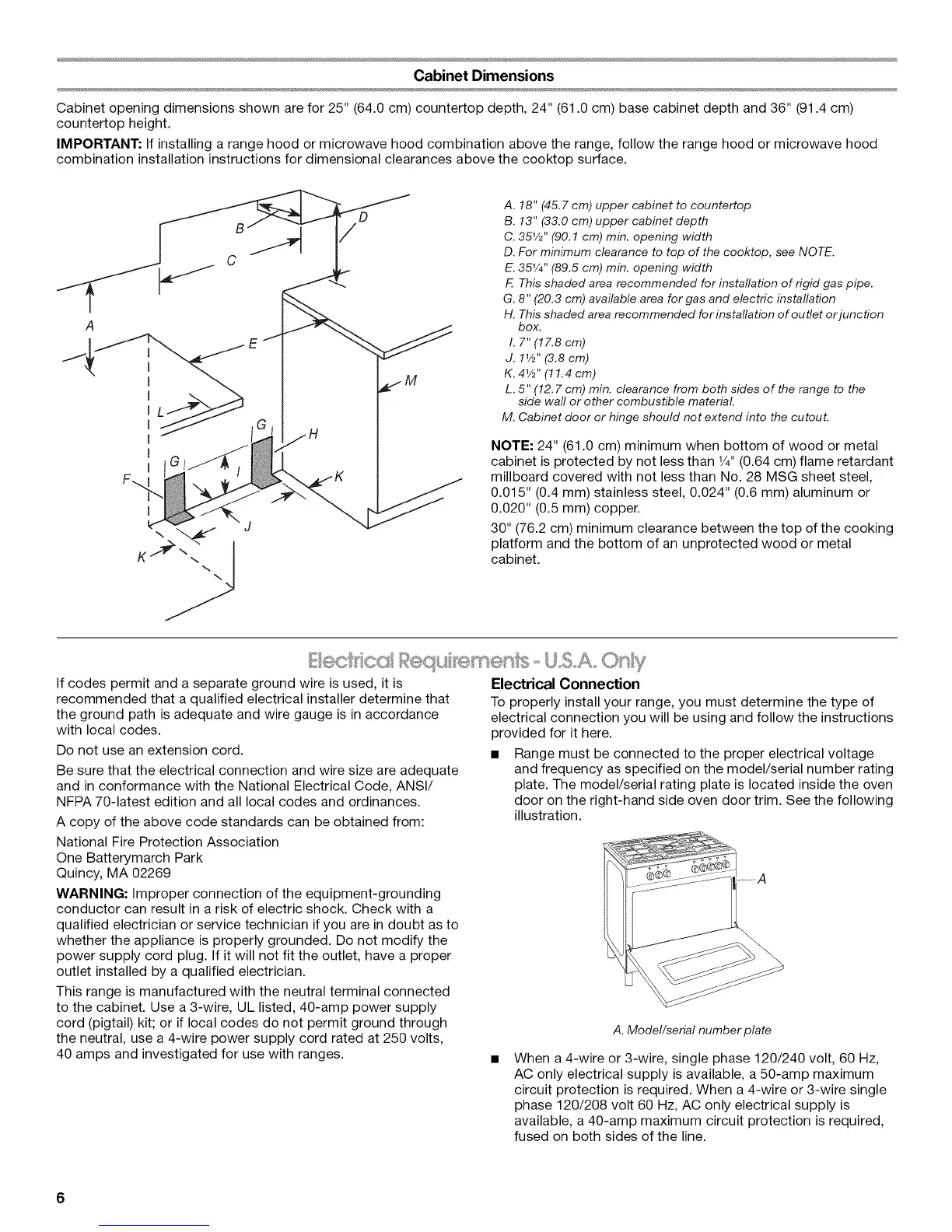 NOTE: 24" (61.0 cm) minimum when bottom of wood or metal