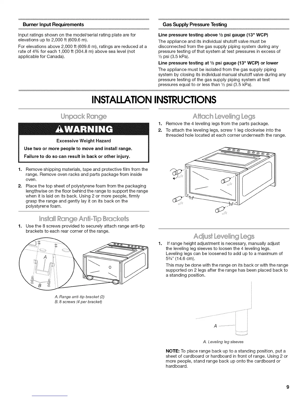 Line pressure testing above 1/2psi gauge (13" WCP)