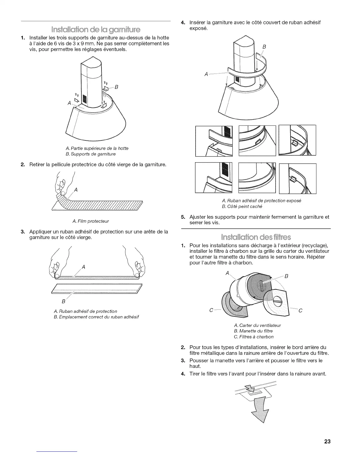 Installer les trois supports de garniture au-dessus de la hotte