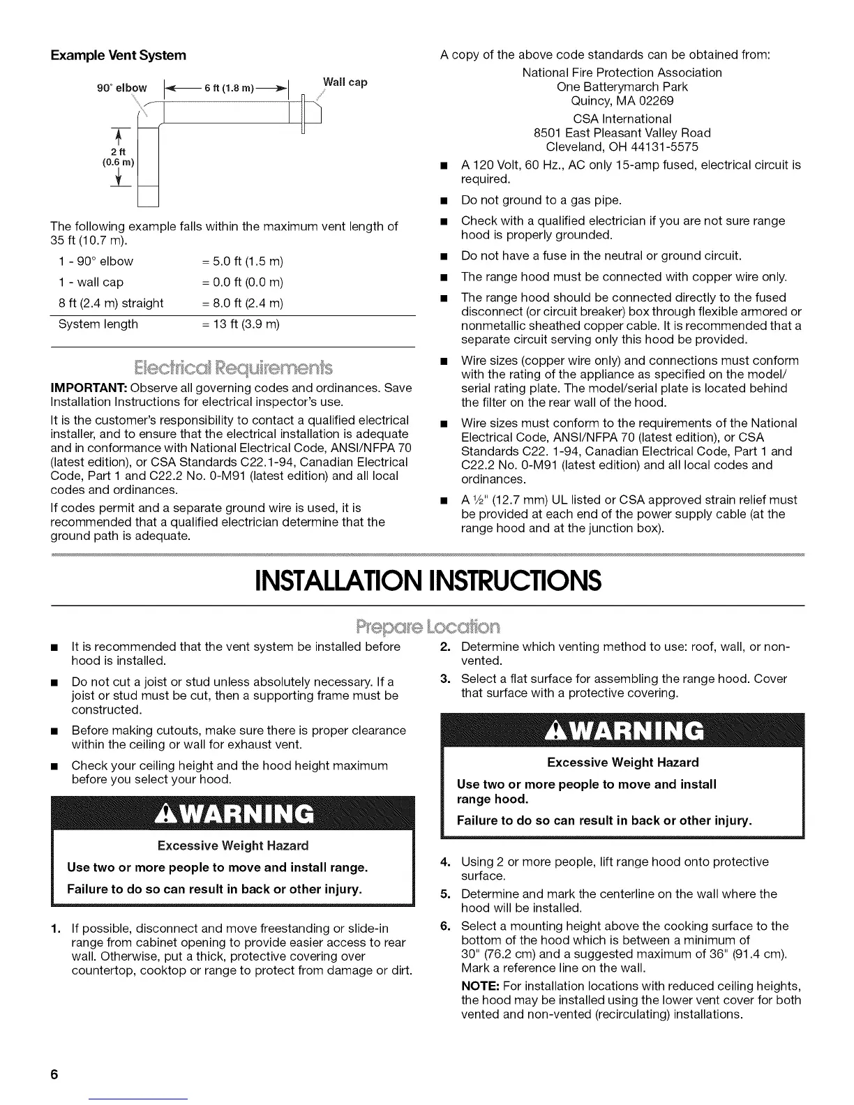 (latest edition), or CSA Standards C22.1-94, Canadian Electrical
