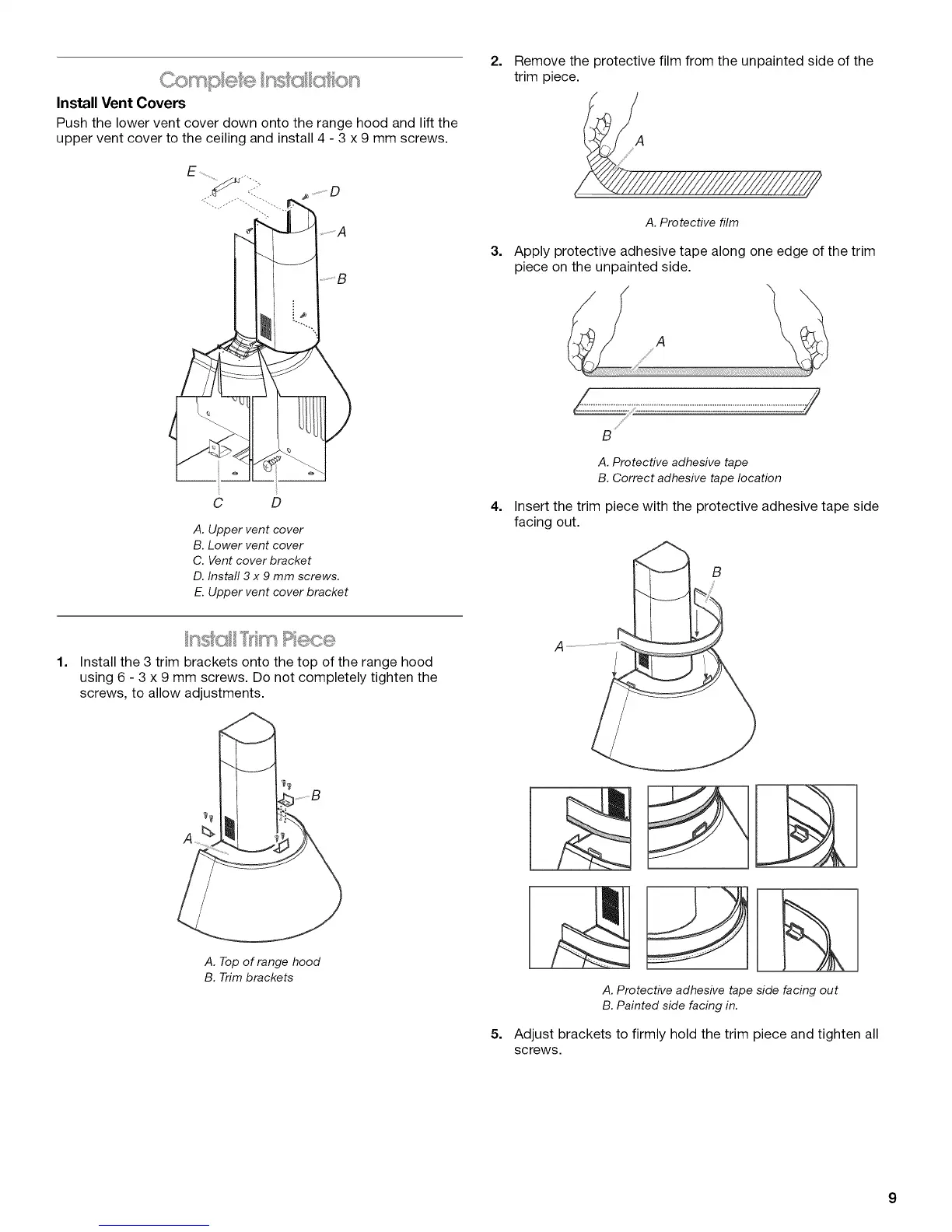 Install the 3 trim brackets onto the top of the range hood
