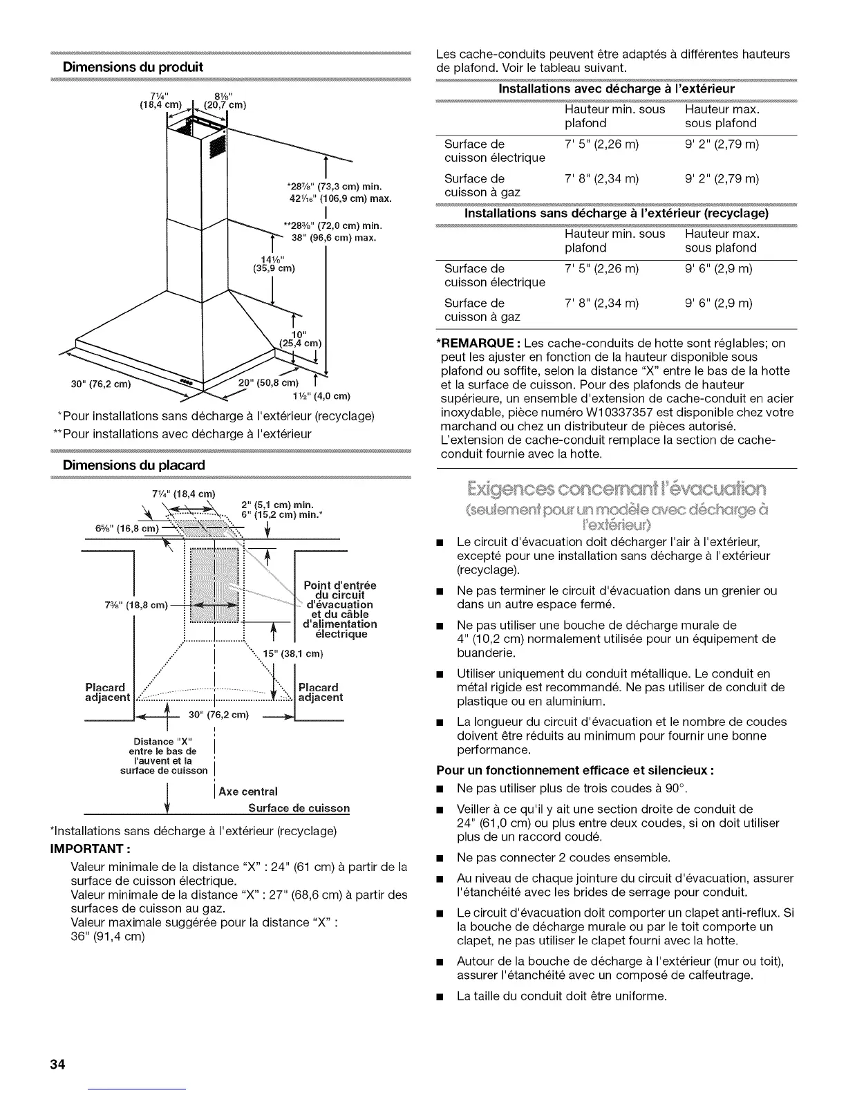 *REMARQUE : Les cache-conduits de hotte sont reglables; on