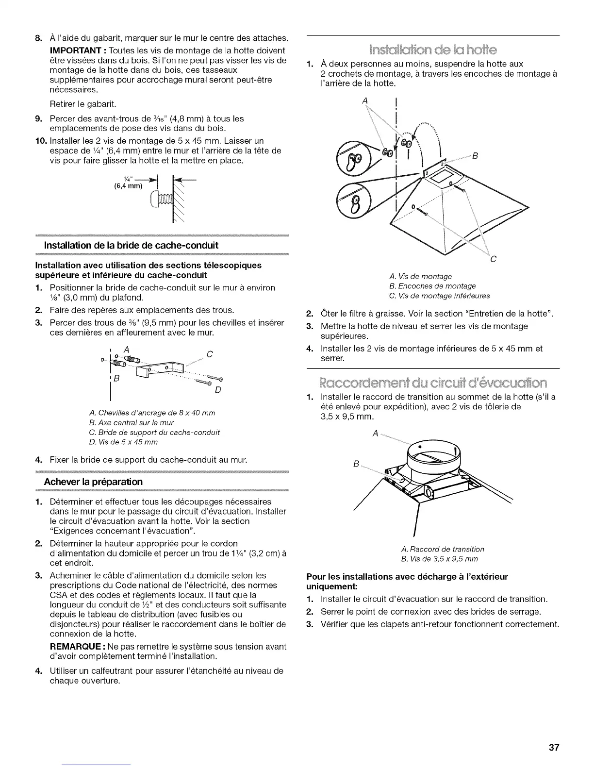 IMPORTANT •Toutes les vis de montage de la hotte doivent