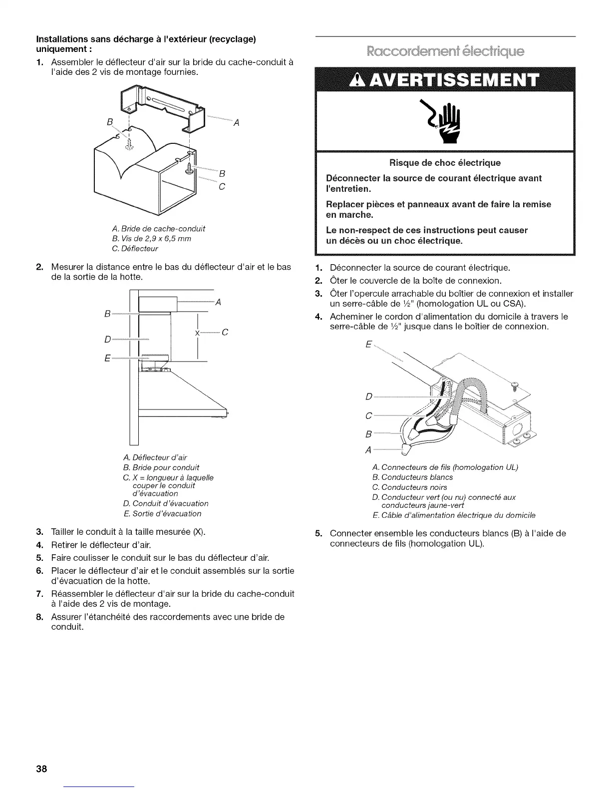 Connecter ensemble les conducteurs blancs (B) a I'aide de
