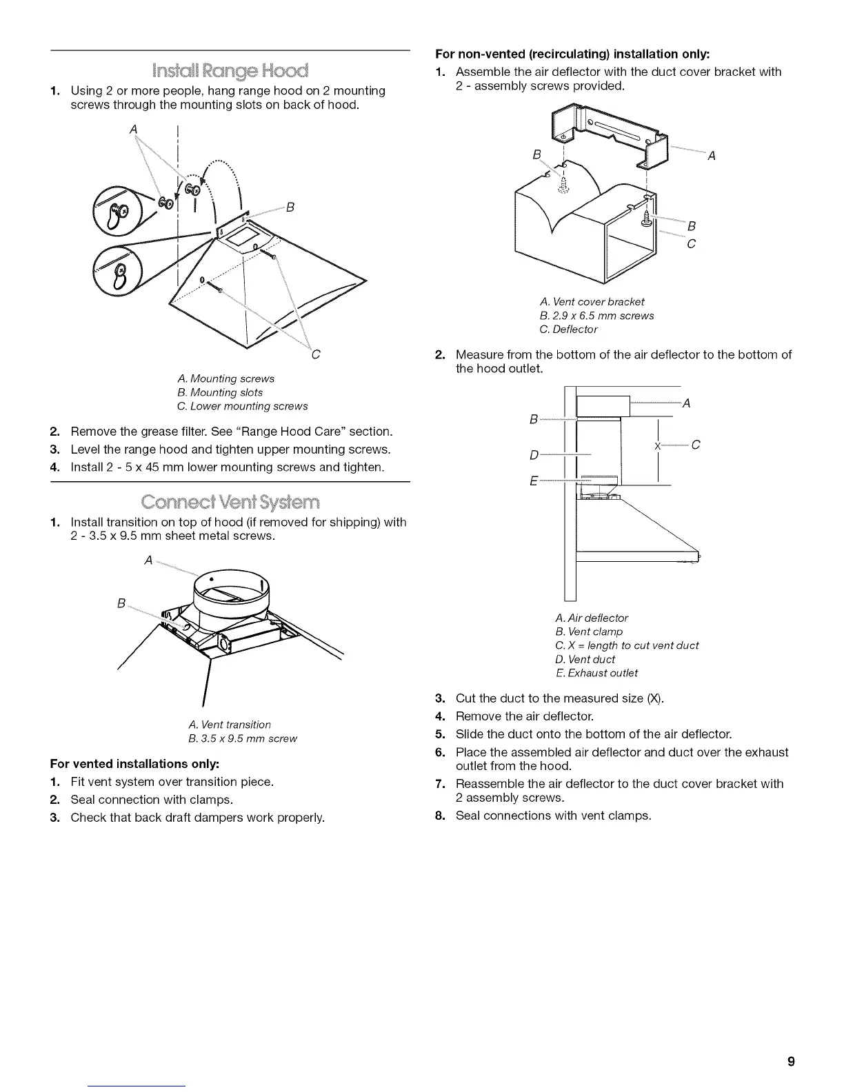 For non-vented (recirculating) installation only: