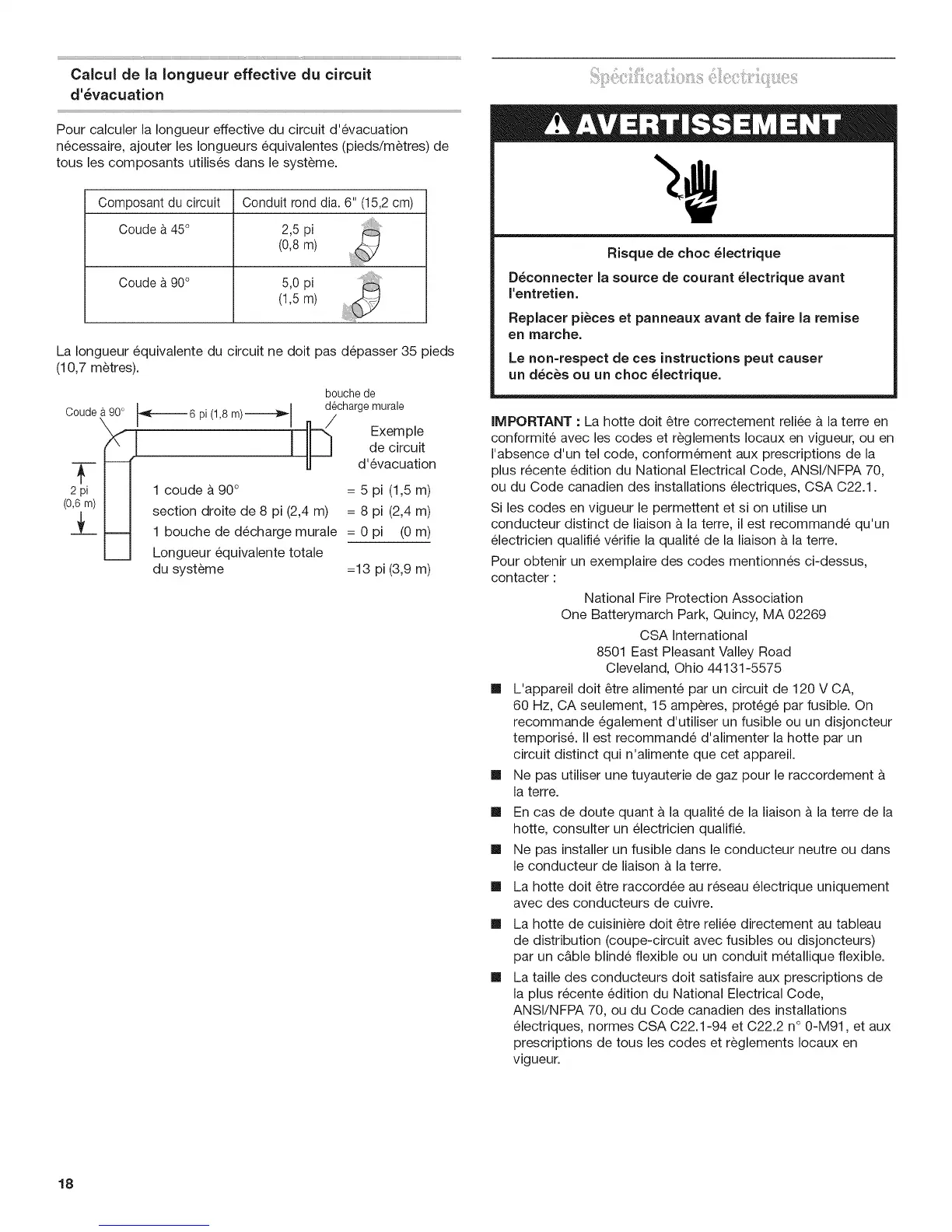 electriques, normes CSA C22.1-94 et C22.2 n° 0-M91, et aux