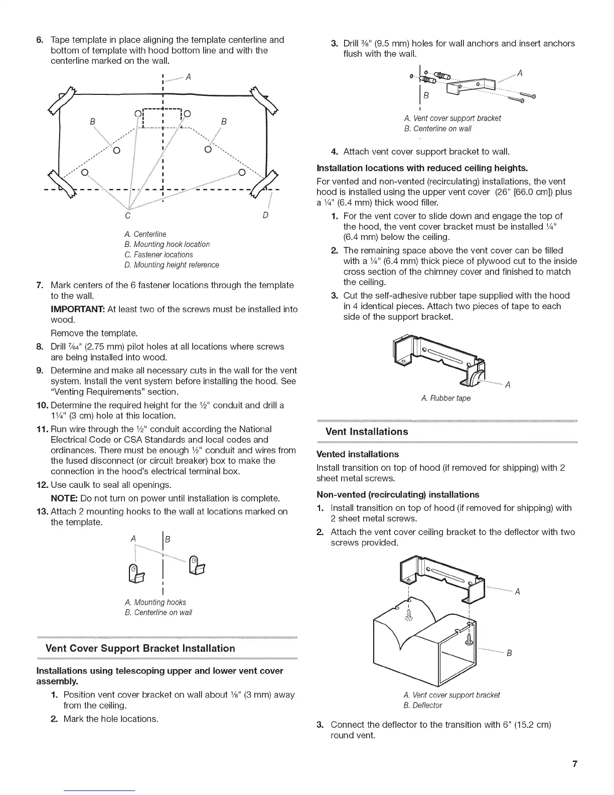 1. Position vent cover bracket on wall about 1/8"(3 mm) away