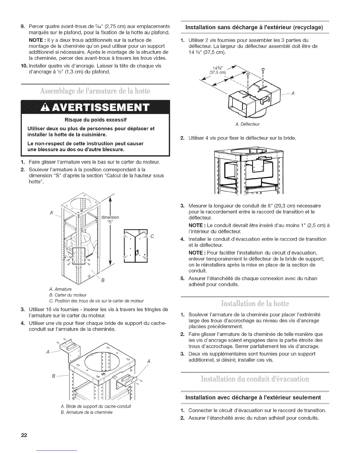 deflecteur. La largeur du deflecteur assemble dolt _tre de