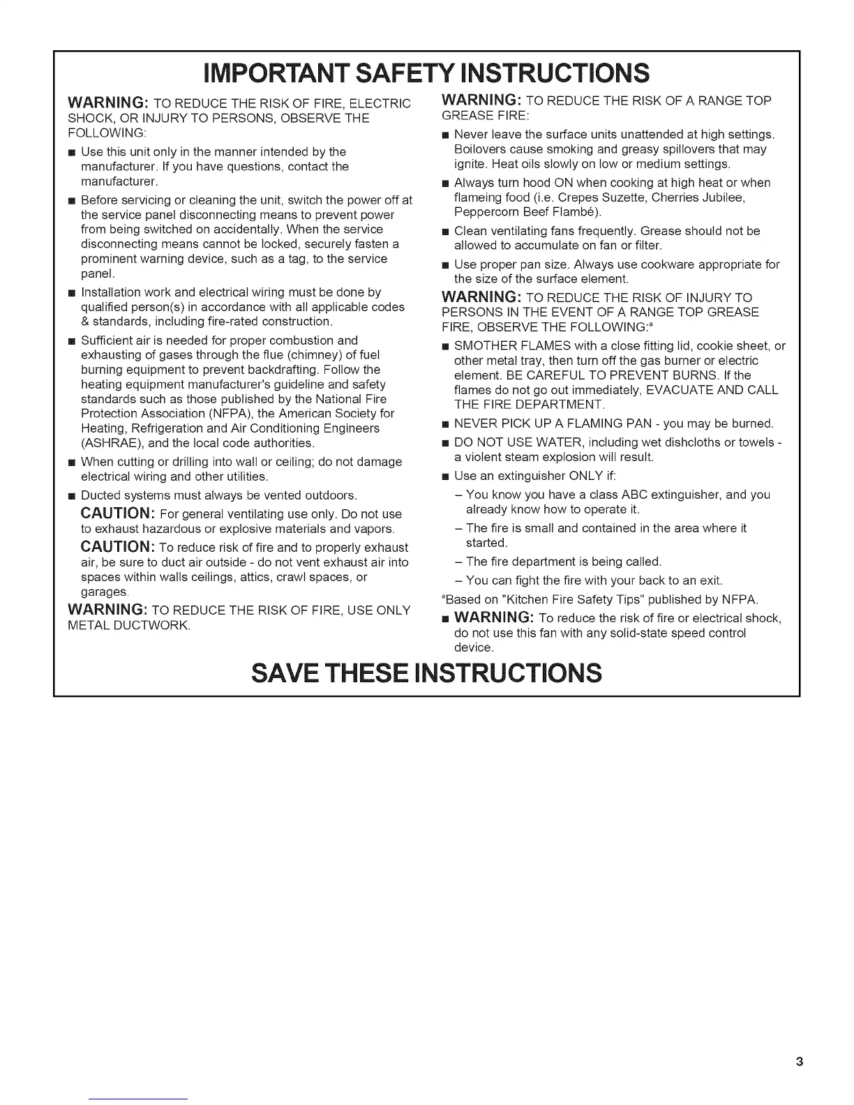 SAVE THESE iNSTRUCTiONS