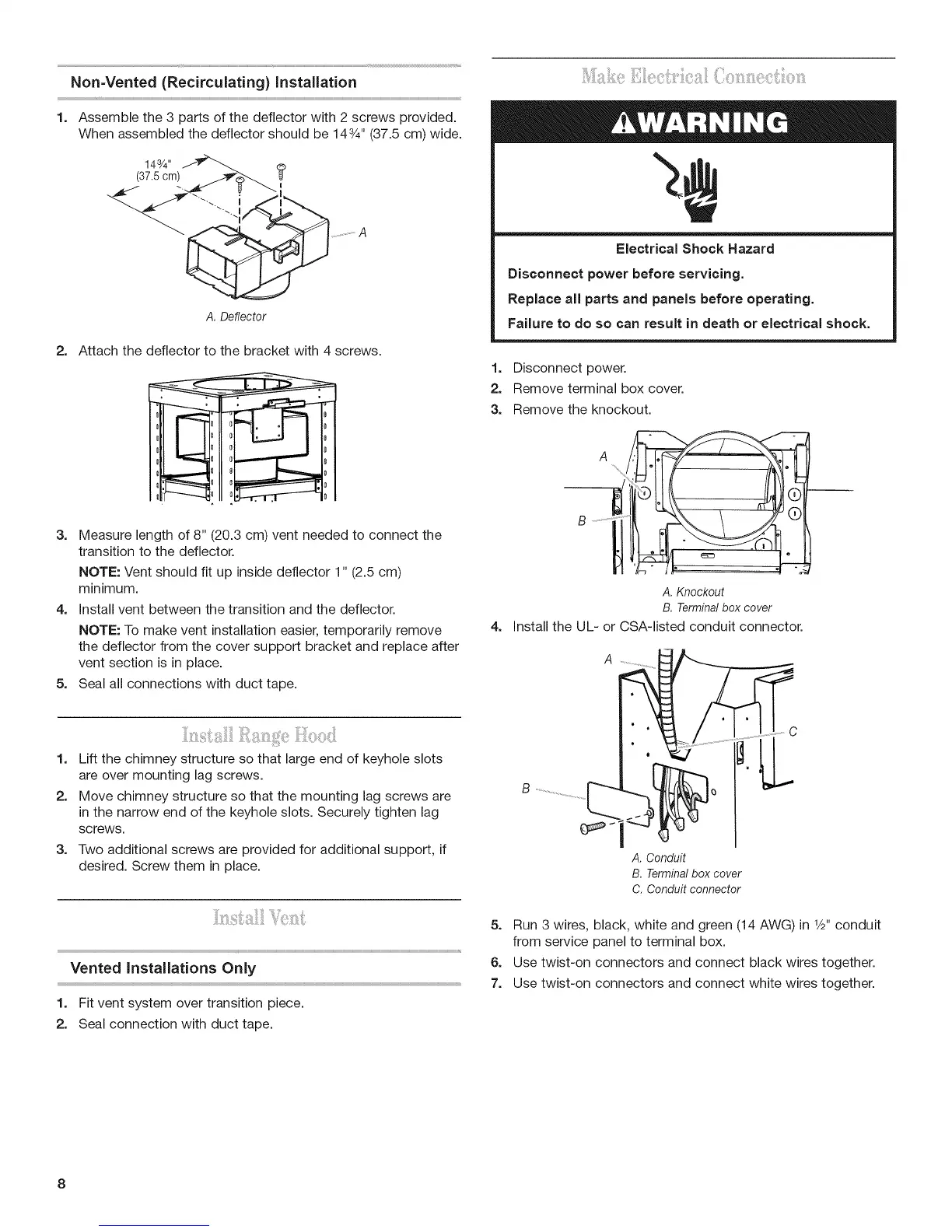 NOTE: Vent should fit up inside deflector 1" (2.5 cm)