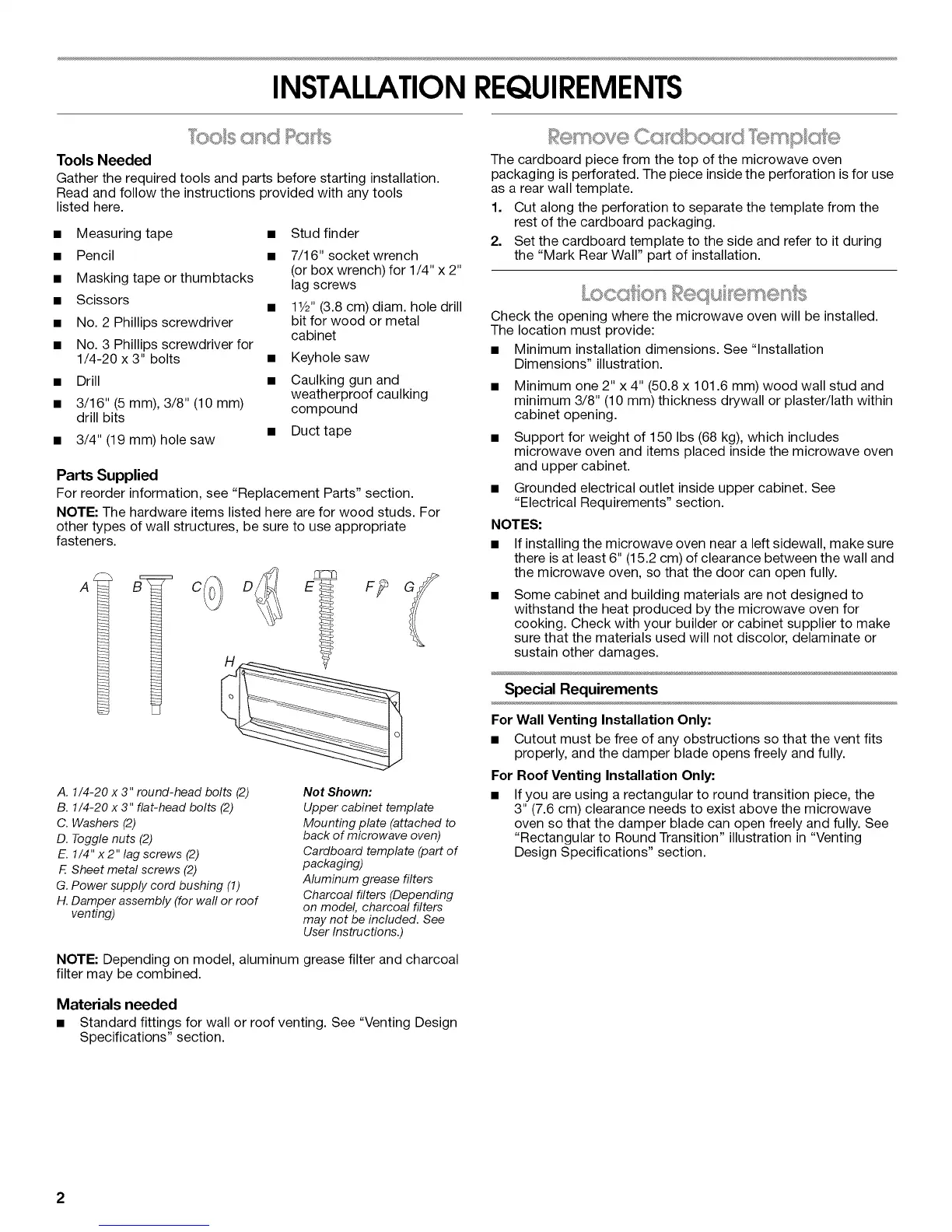NOTE: Depending on model, aluminum grease filter and charcoal