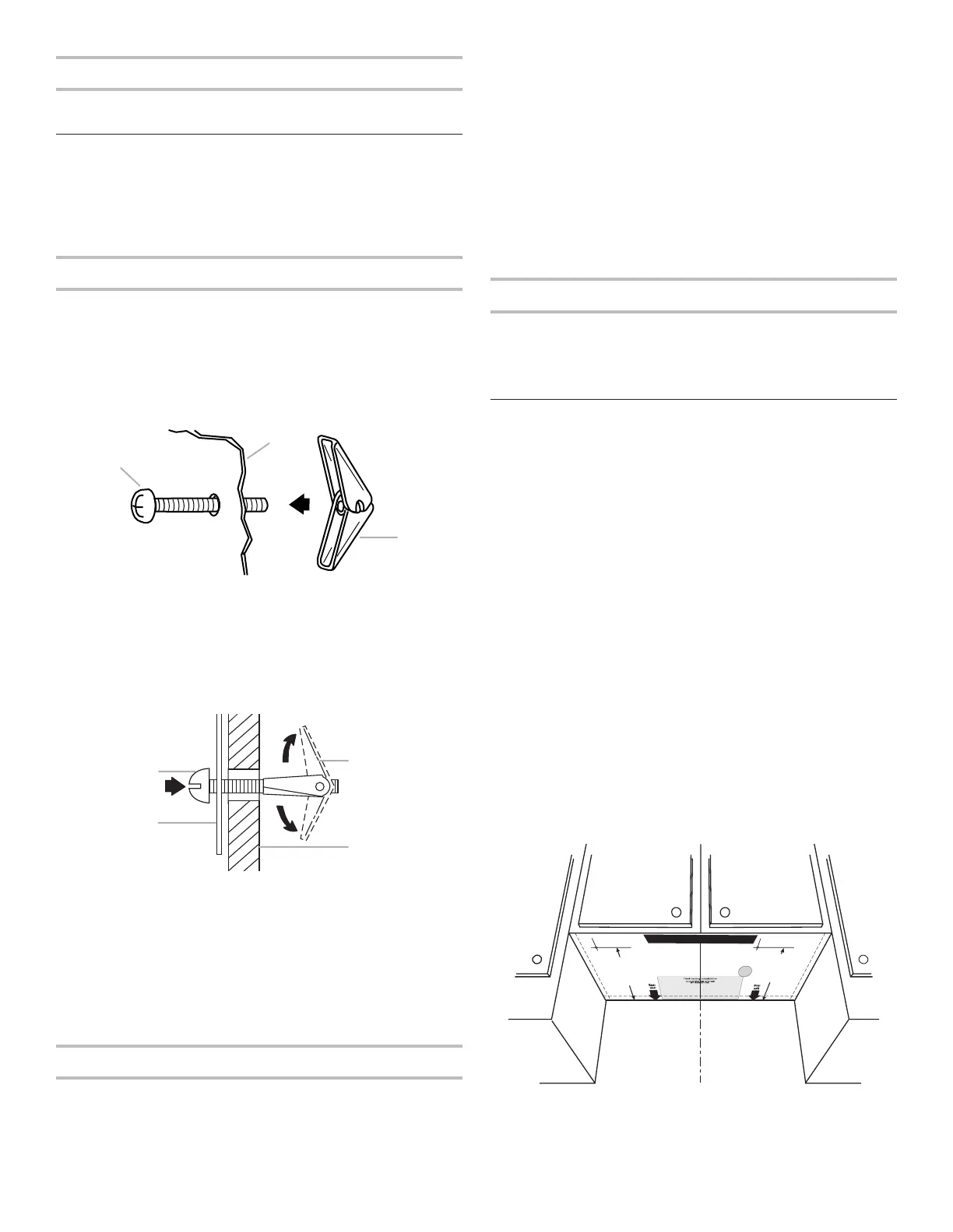4. Push the 2 bolts with toggle nuts through the drywall, and