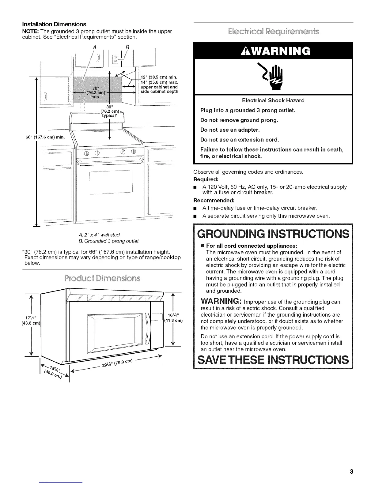NOTE: The grounded 3 prong outlet must be inside the upper