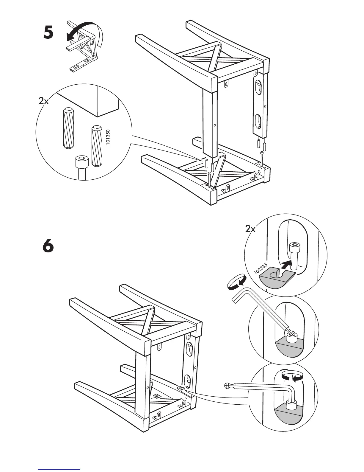 IKEA INGOLF STOOL - Assembly Step 5; Attach Seat Supports; Assembly Step 6; Secure Crossbars