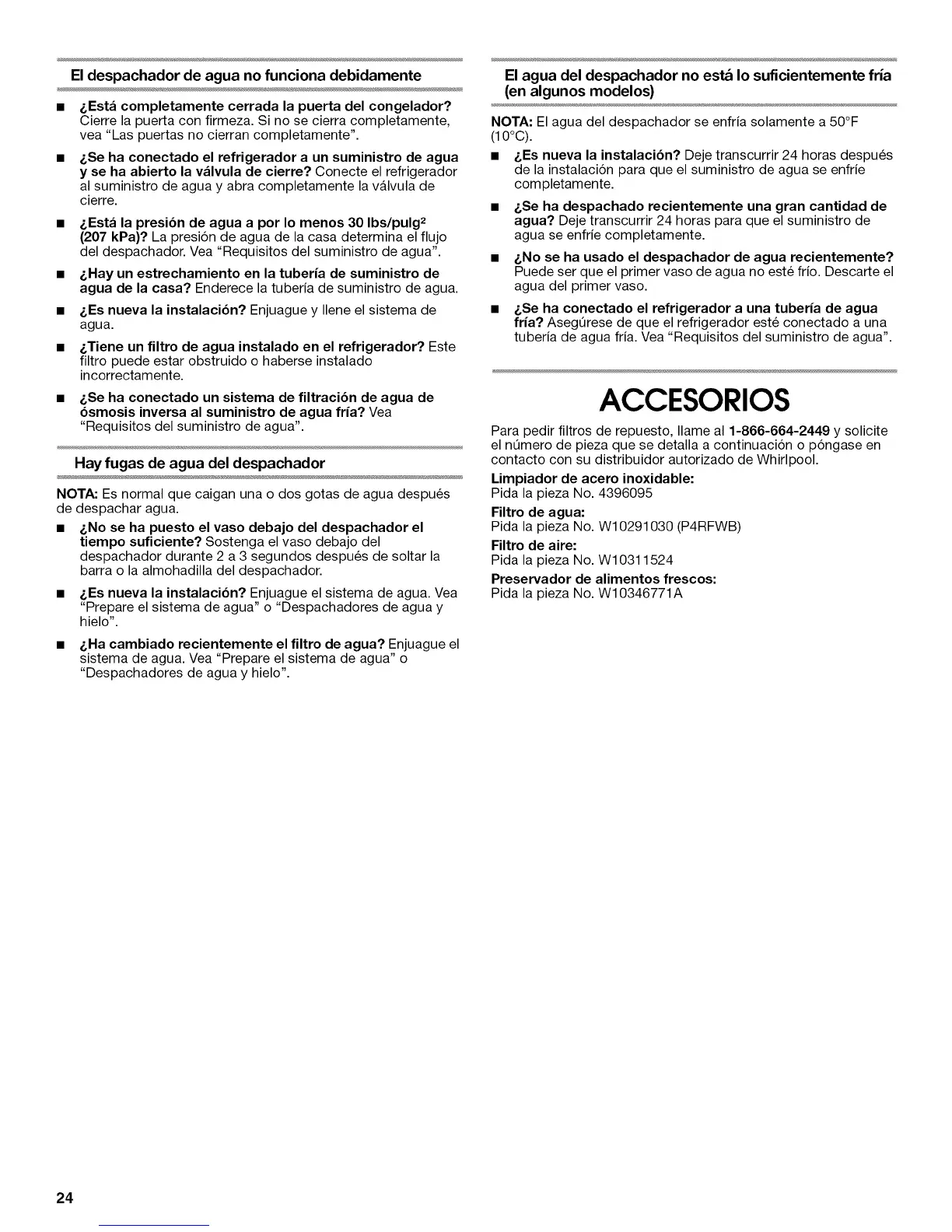 NOTA: El agua del despachador se enfria solamente a 50°F
