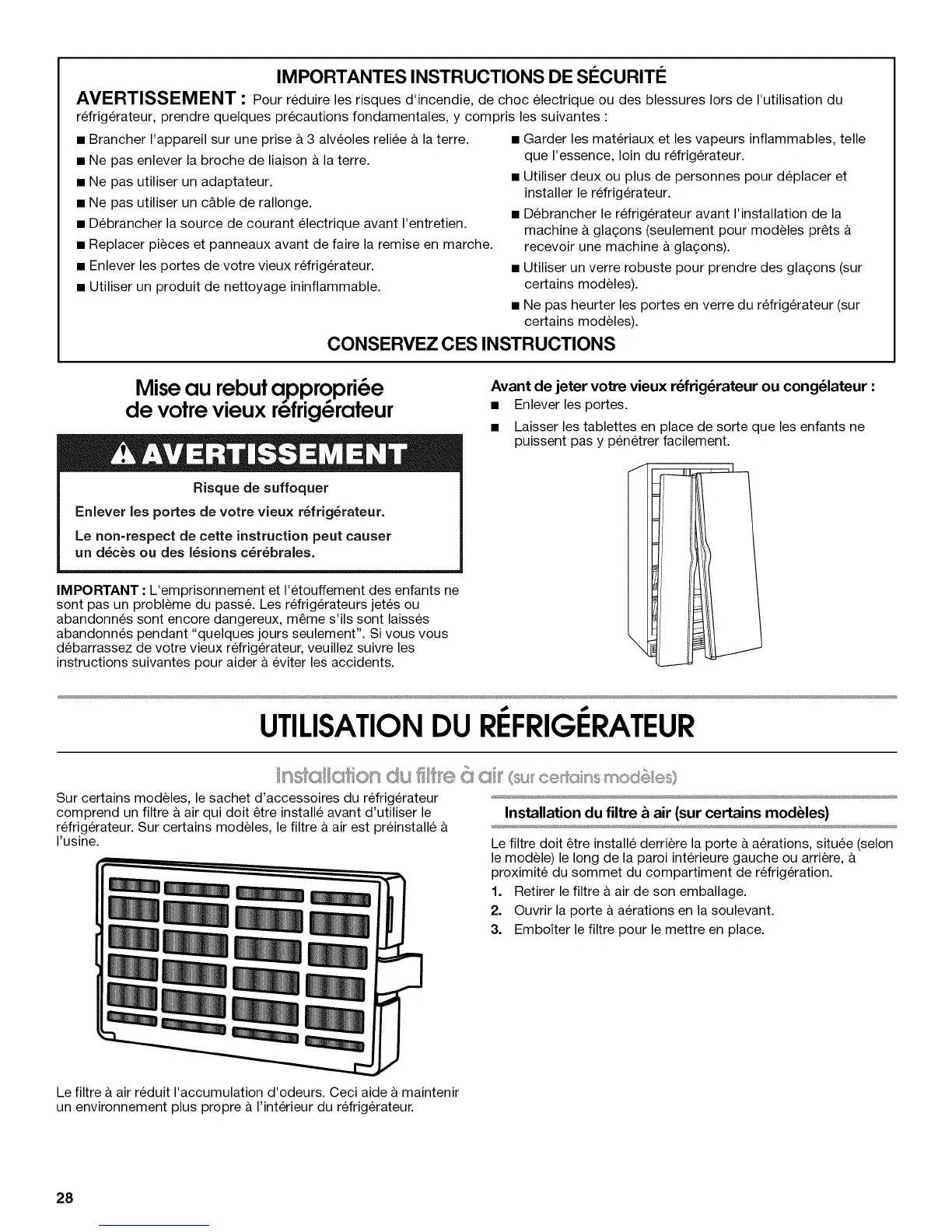 refrigerateur. Sur certains modeles, le filtre a air est preinstalle