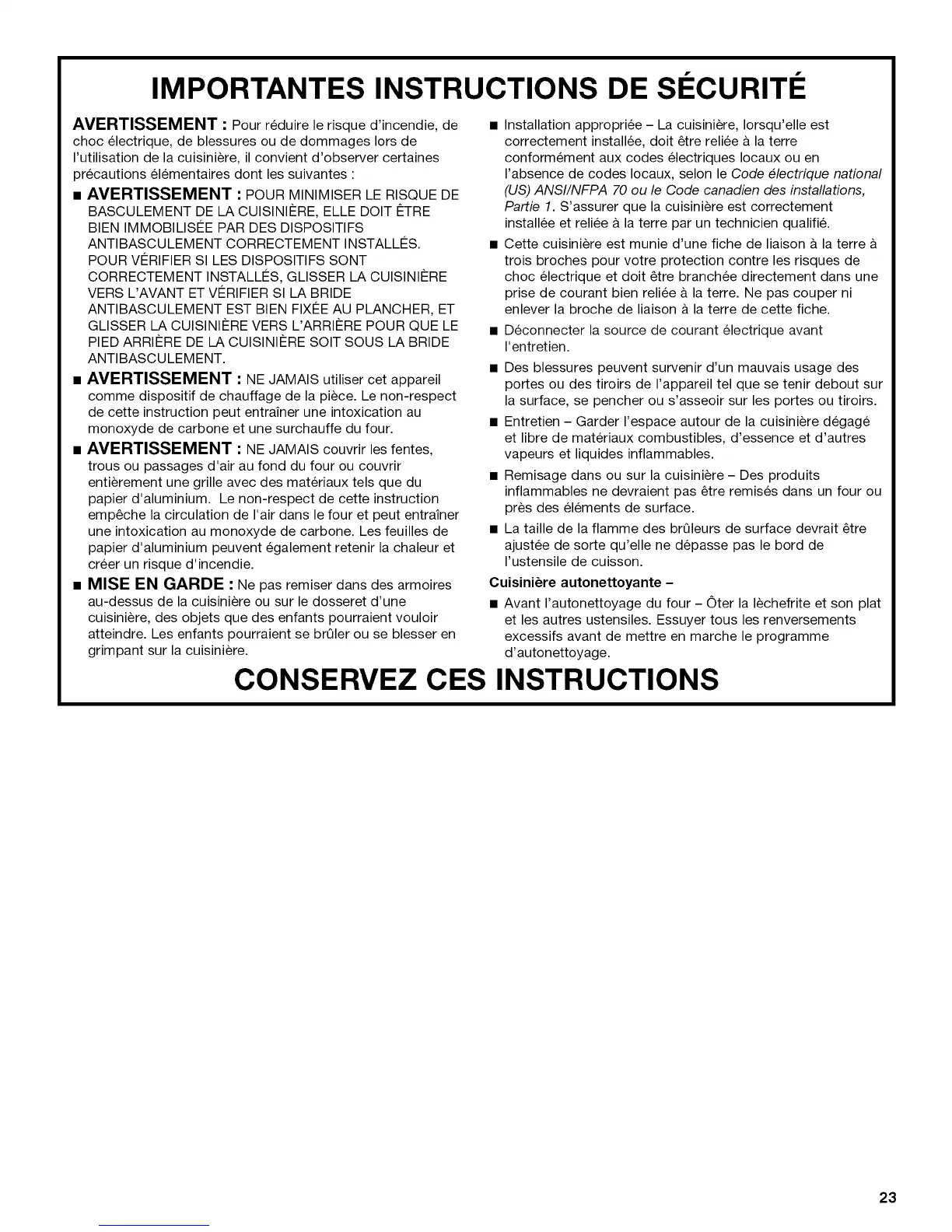 IMPORTANTES INSTRUCTIONS DE SI CURITI
