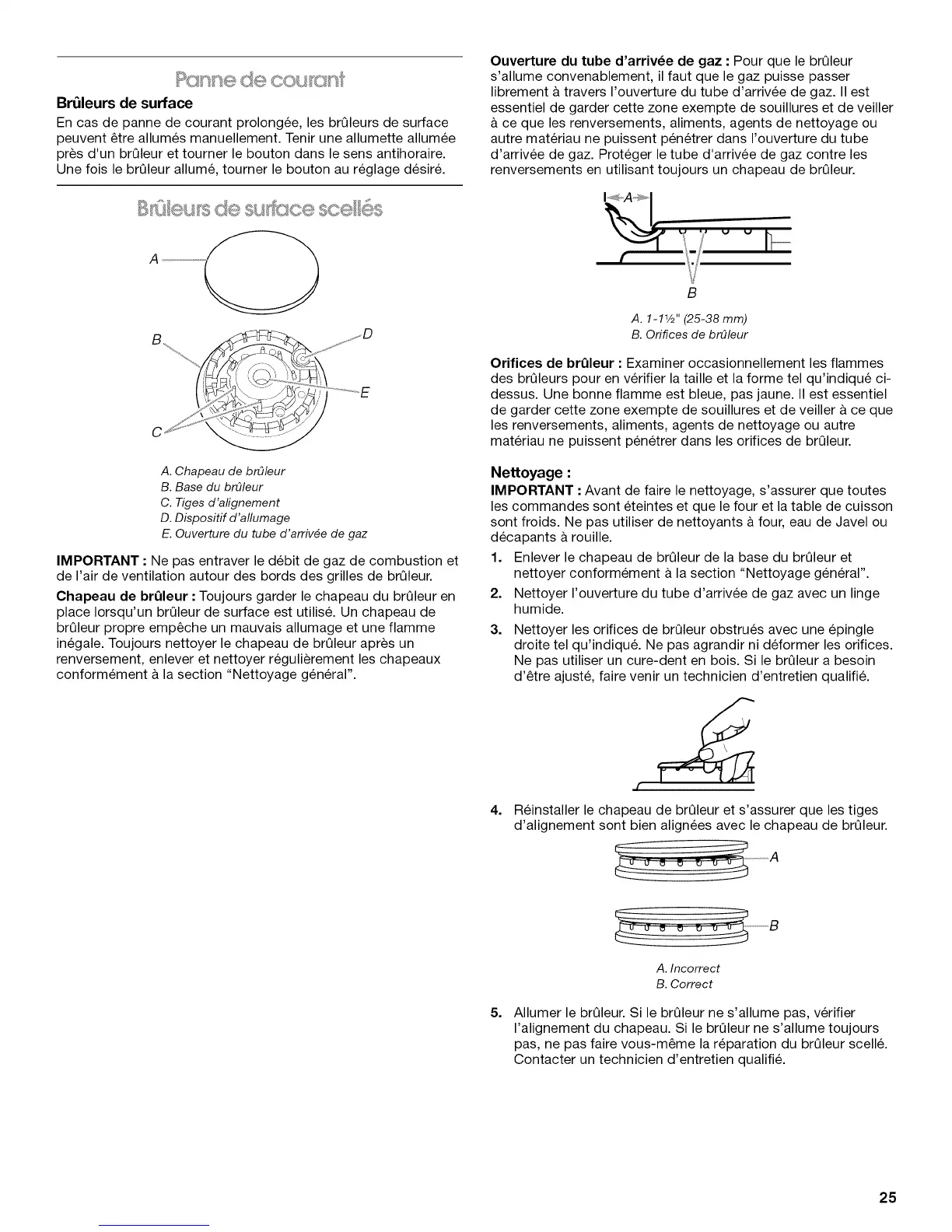 I'alignement du chapeau. Si le brQleur ne s'allume toujours