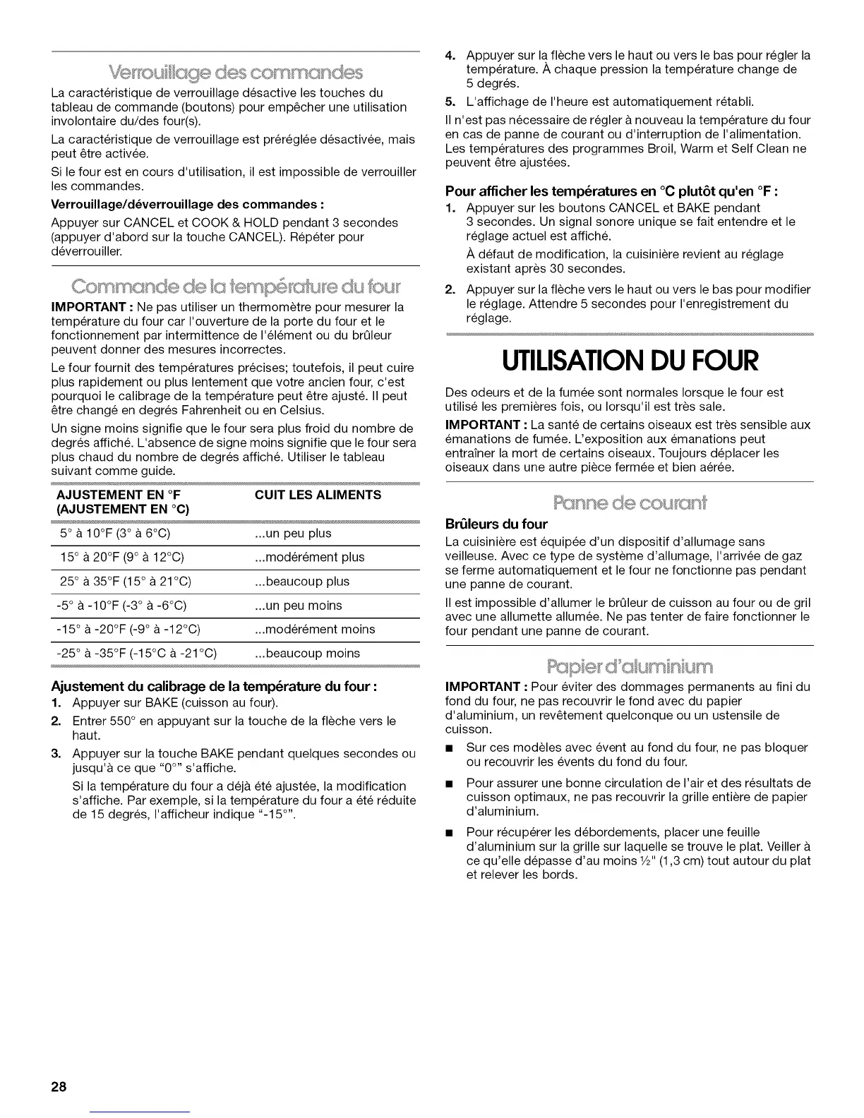 AJUSTEMENT EN °F CUlT LES ALIMENTS