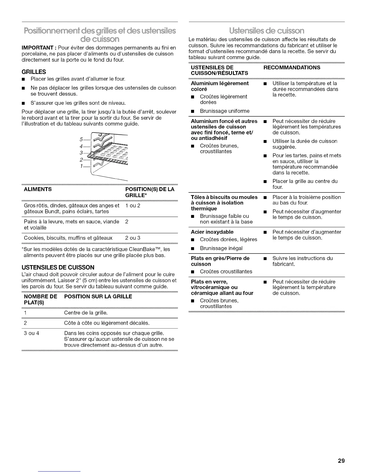 uniformement. Laisser 2" (5 cm) entre les ustensiles de cuisson et