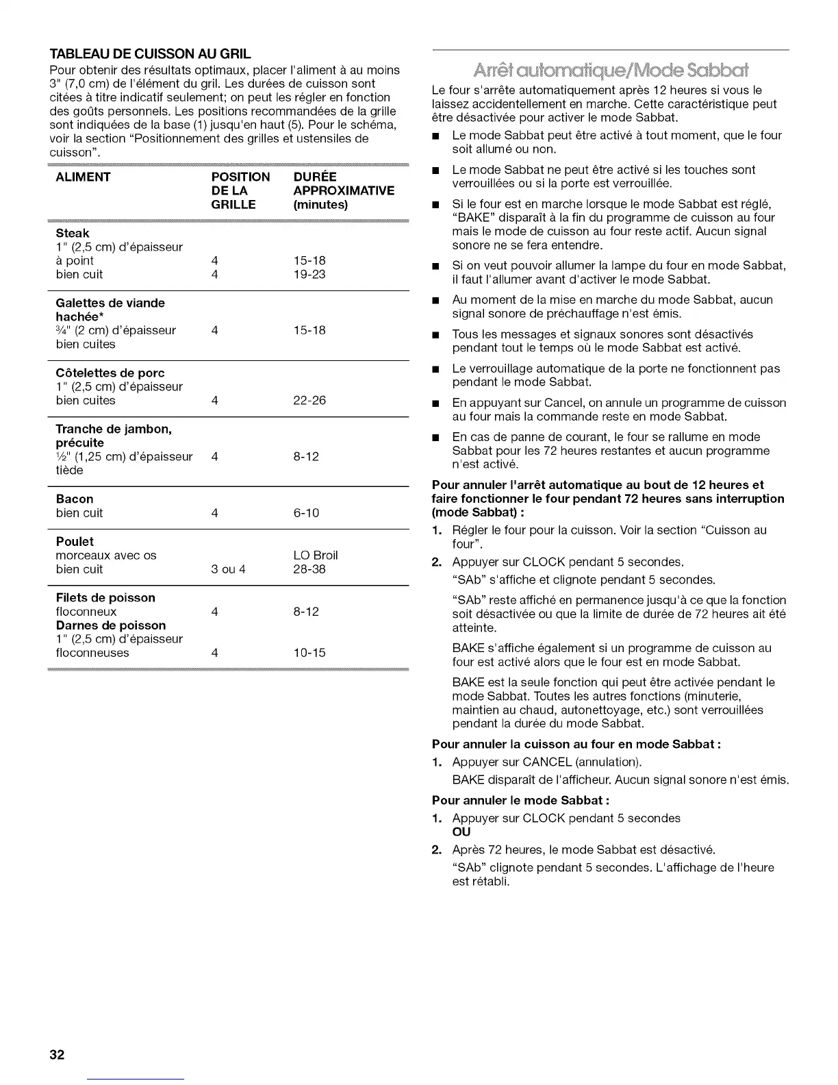 • Le mode Sabbat peut _tre active & tout moment, que le four