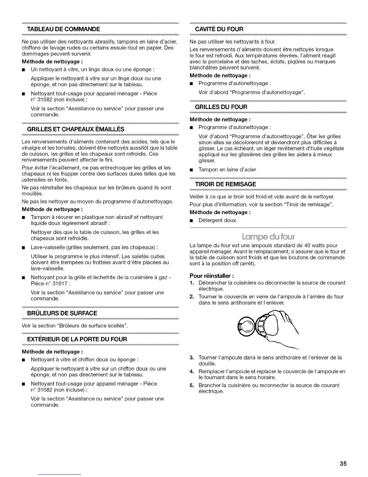 Voir d'abord "Programme d'autonettoyage". 0ter les grilles