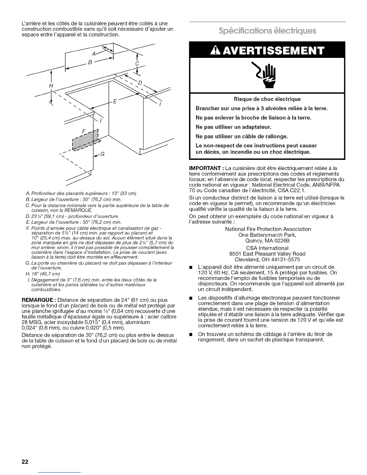 E. Largeur de I'ouverture : 30" (76,2 cm) min.