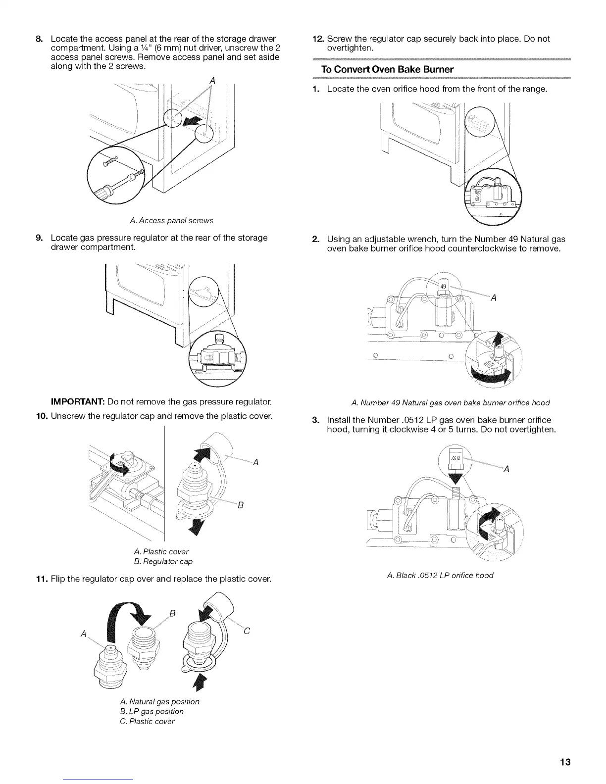 Install the Number .0512 LP gas oven bake burner orifice